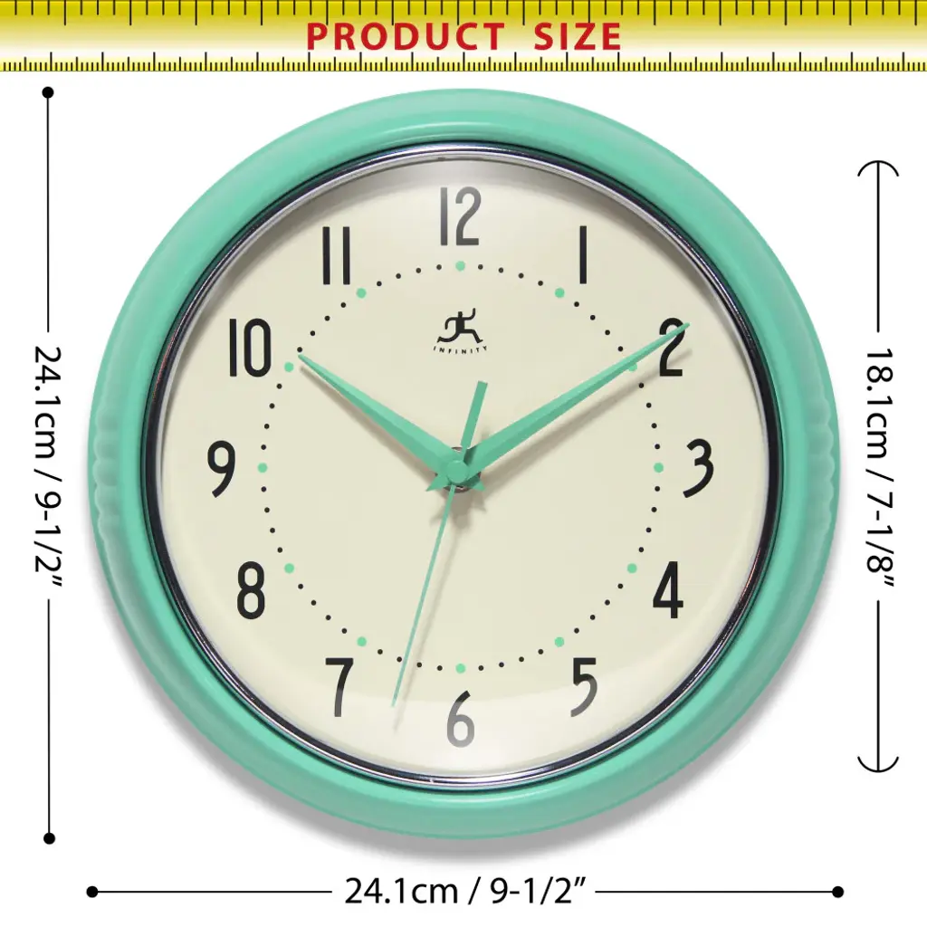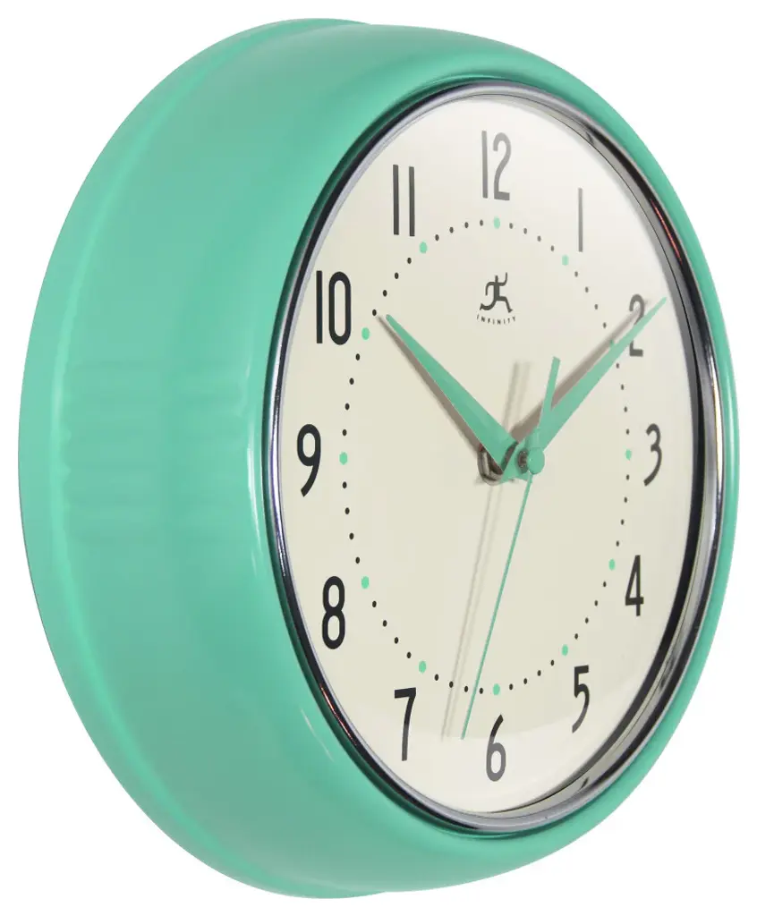 Infinity Instruments Retro Kitchen Vintage 50s Wall Clock, Mint Green