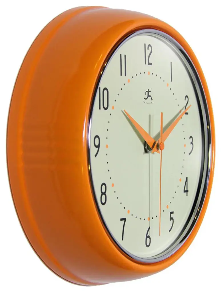 Infinity Instruments Retro Kitchen Vintage 50s Wall Clock, Orange