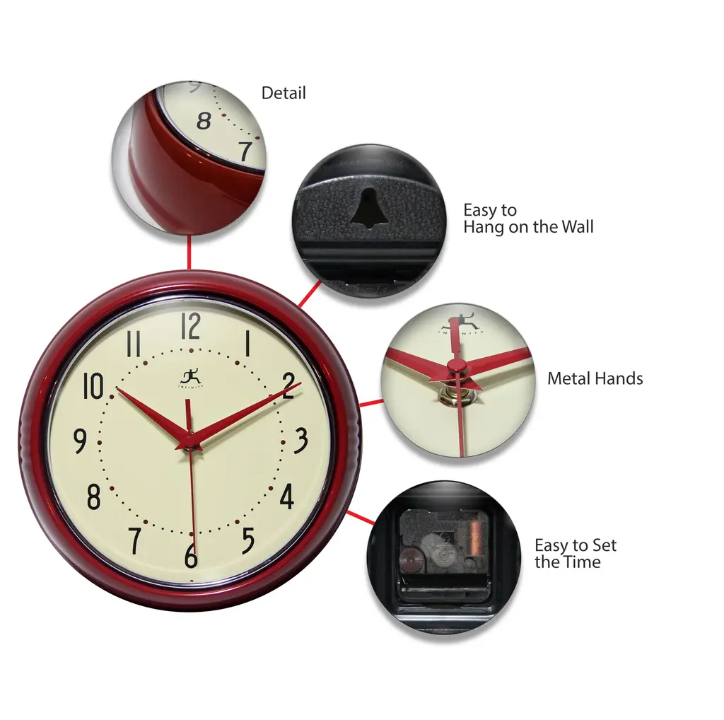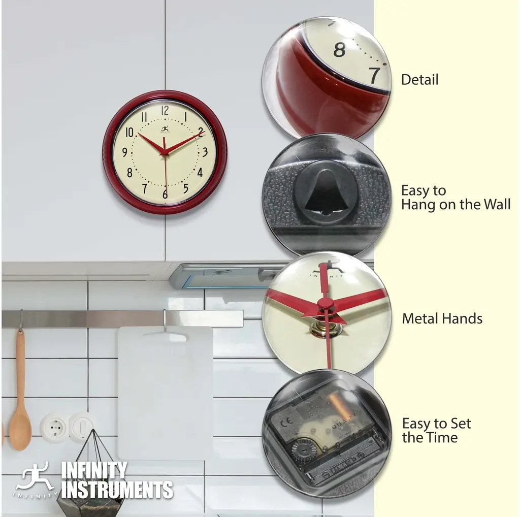 Infinity Instruments Retro Wall Clock collection has been a staple in the interior design/wall decor accessories for well over a decade. It has proven the test of time with a clean retro look that fits most, if not all, home decor layouts. There have been many copycats but there is only one true Retro Aluminum Wall Clock.