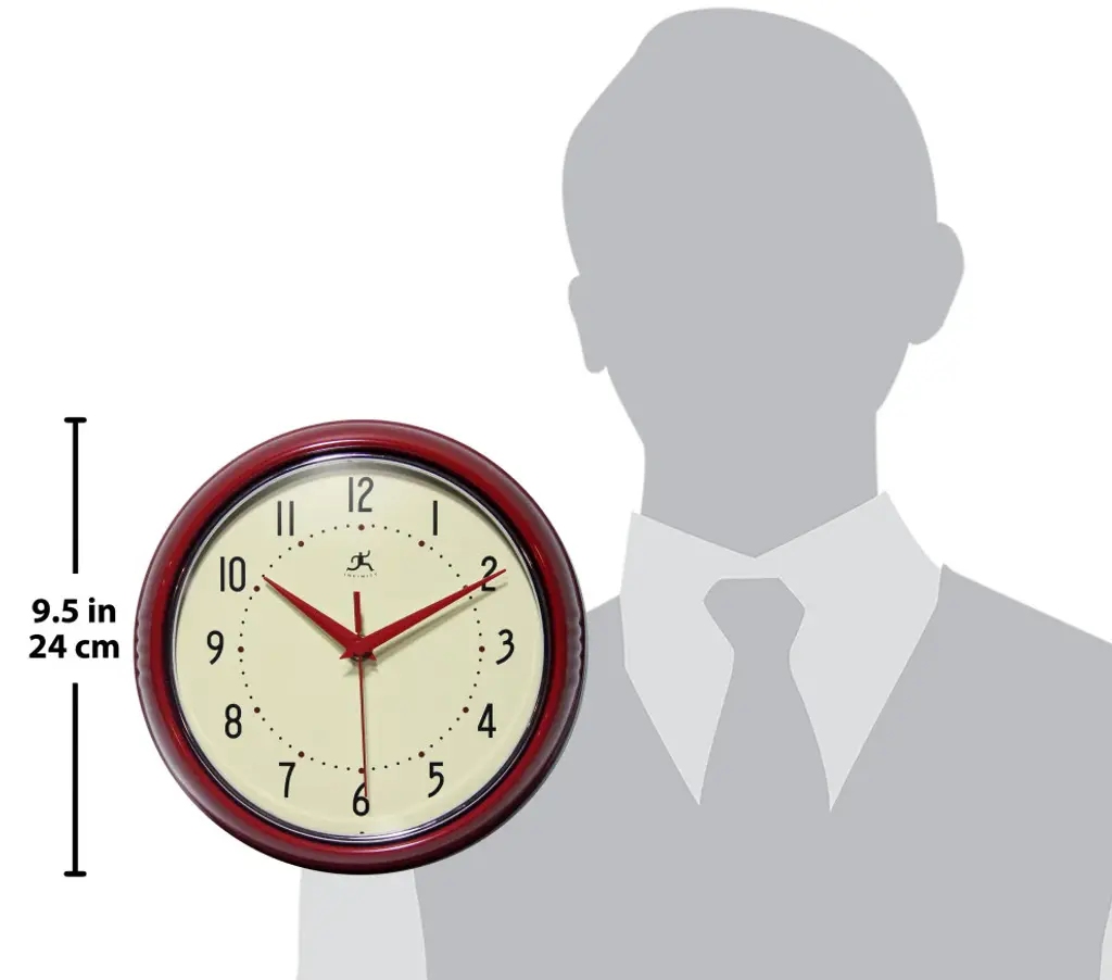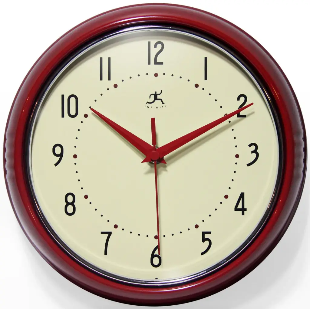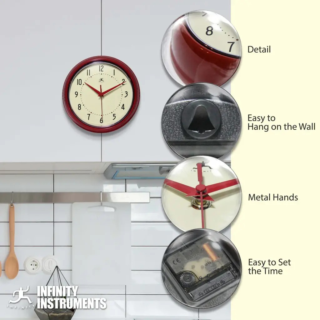 Infinity Instruments Retro Kitchen Vintage 50s Wall Clock, Red