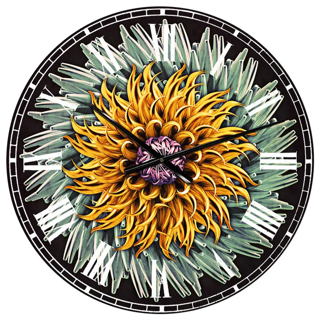 Bring Contemporary Abstraction to your home with this large Circle Metal wall art. This Interesting Clock Metal Artwork makes it the focal point of any room or office. - White Gloss Coating ensures colors are extra vibrant with light reflection.- Aluminum grade Sheet Metal with 1 inch mounting frame on the back giving the illusion that the artwork is floating on the wall..- Mounting Brackets are included along with instructions.- High Quality Digital images are created directly into a glossy aluminum panel producing a stunning and captivating print into the glossy finish of the metal.- Water, Fire and Scratch resistant HD Aluminum panels.- Looks better than any photo paper and guaranteed to last at least 20 years- Easy to clean with a microfiber cloth. Colors are far superior to regular Canvas Art. - Easy to Hang