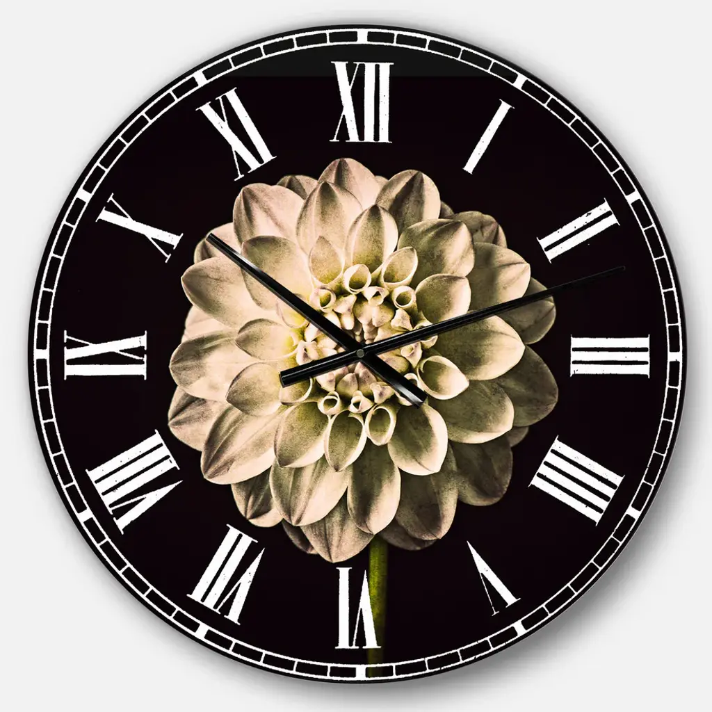 Isolated Dahlia Flower In Black Oversized Floral Metal Clock, 23x23