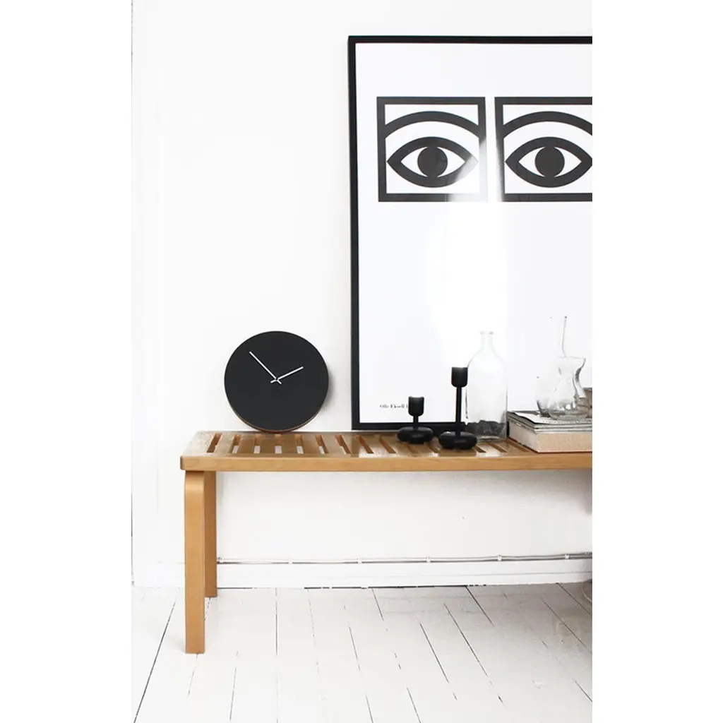 Kiekko wall clock, designed and manufactured by the Finnish Muoto2, features a simple clock face with sleek hands and colored laminate surface. Edges of Kiekko are natural birch. The clock has high-quality German machinery that runs almost silent. The playful minimalism of Kiekko brings joy to homes and public environments alike. Designed by Kirsi Pasanen and Mikko Kentta from Muoto2, Kiekko wall clock has been manufactured in Lahti, Finland. Black Kiekko has been coated with chalkboard paint and it comes with white chalk, allowing you to customize the clock with your own decorations or use it as a note board.