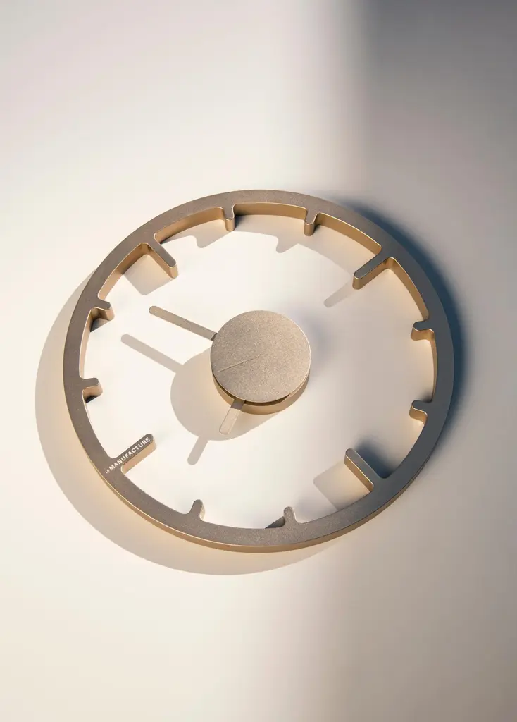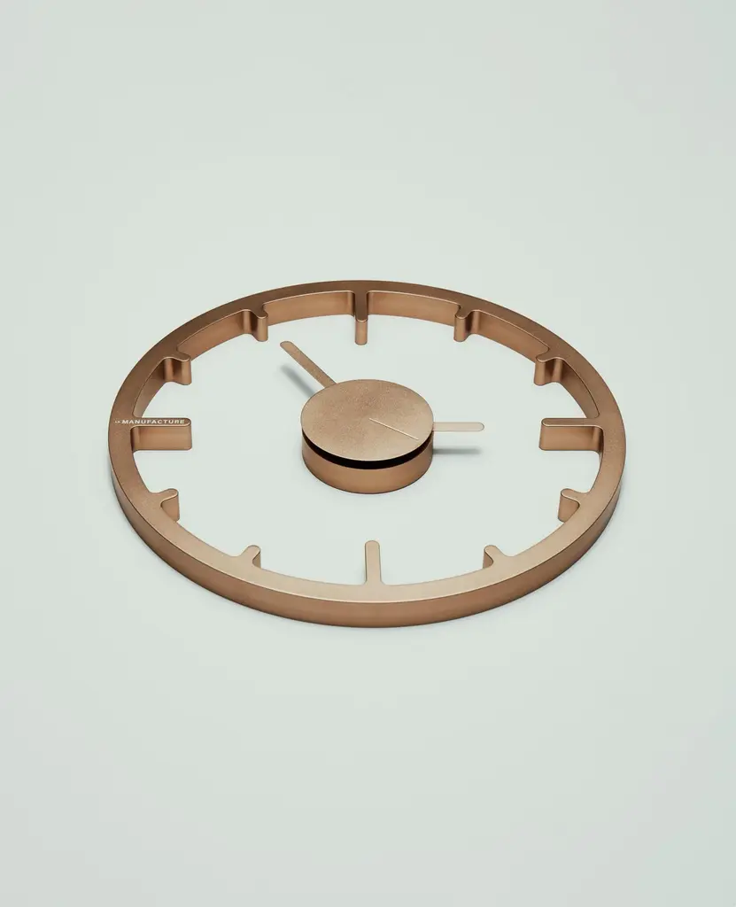 Wall Clock — Anodized champagne/black laser cut metal.