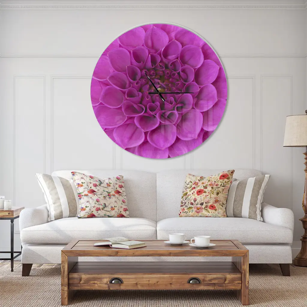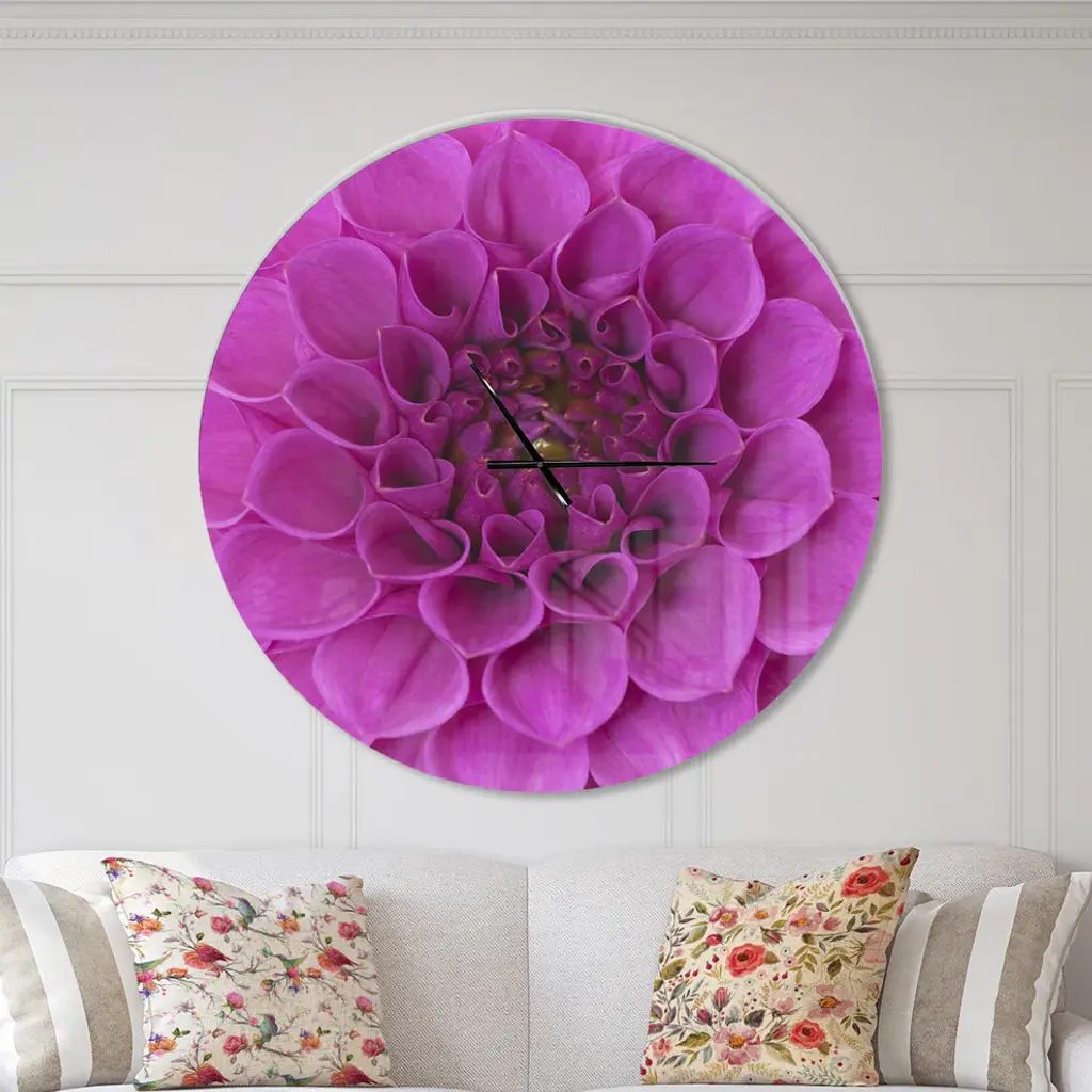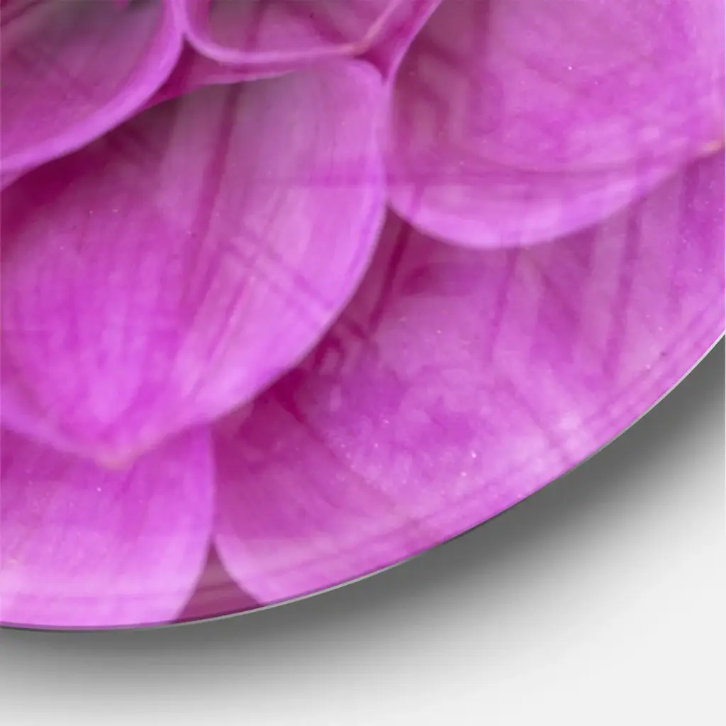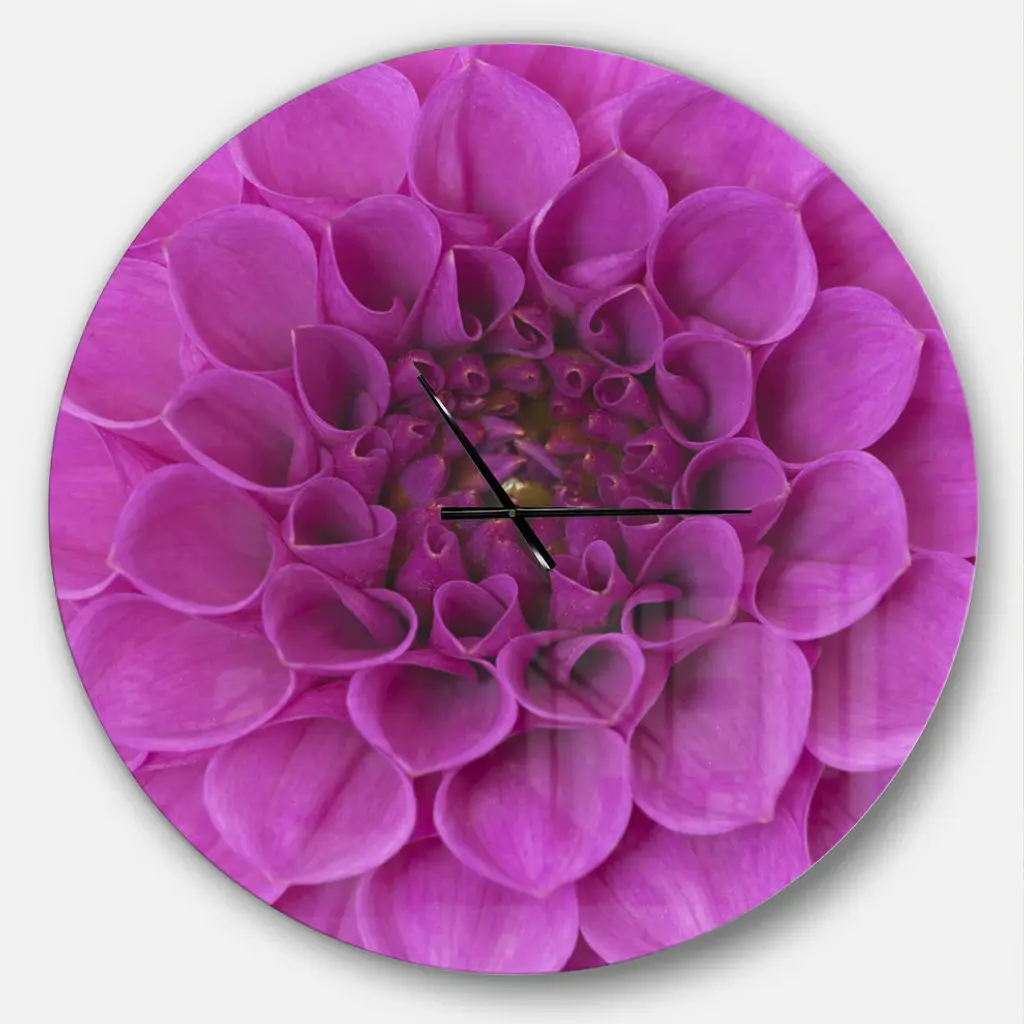A beautiful addition to any home or office, this Modern & Contemporary round wall clock is made on 100% solid aluminum. It has a highly reflective glossy finish creating a sleek modern look. This Large Purple Flower and Petals wall clock arrives completely ready to hang on the wall. Simply insert the �AAA� battery included with your order.Available in several size, this Modern Oversized Clock makes it the focal point of any room.Features - Ultra Gloss Coating ensures colors are extra vibrant with light reflection. - 1mm Aluminum grade sheet metal. - 1-inch mounting frame gives the illusion of artwork floating on the wall. - Mounting brackets and instructions are included. - High quality digital images are created directly into a glossy aluminum panel, producing a stunning and captivating print in the glossy finish of the metal. - Looks better than any photo paper and guaranteed to last at least 20 years. - Easy to clean with a microfiber cloth. - "AAA" battery included with your order. - Easy to hang. - Style: Modern & Contemporary - Material: Metal - Shape: RoundSee Options drop down for available sizes.