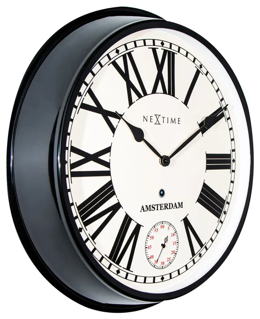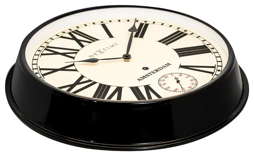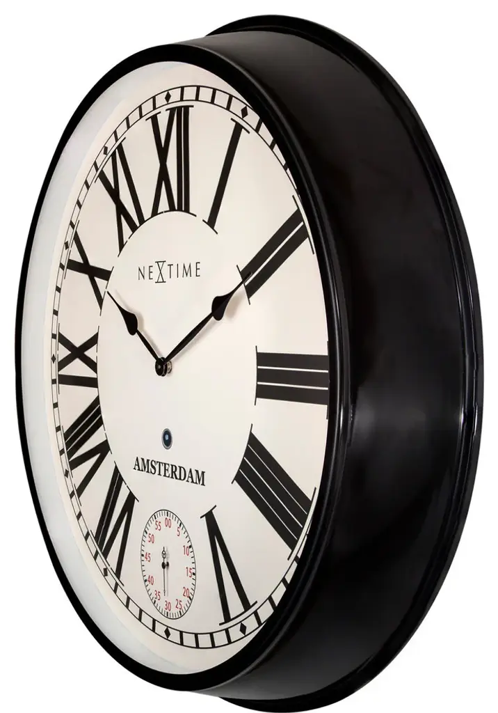 Large Round Amsterdam Clock, Black Frame, Ivory Face, Battery Operated