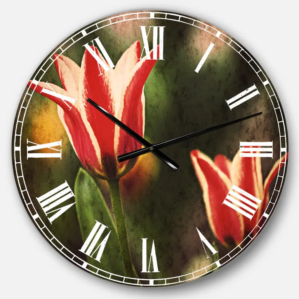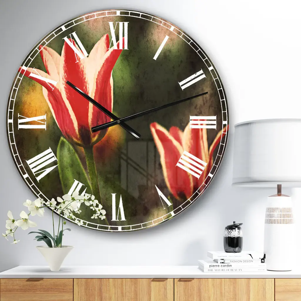 Large Tulips On Green Background Flower Large Metal Wall Clock, 23x23