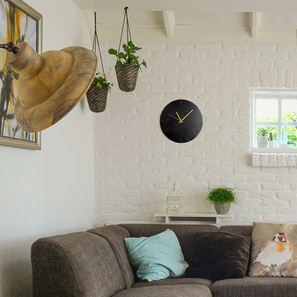 Your decor looks unique and modern with this minimalist design wall clock. The Letoon contemporary wall clock is made from full-grain leather on the face and fixed with a wooden back. Made from one-piece leather. Every piece is hand-cut, hand-stitched, sanded-burnished, and carefully made with the best quality.