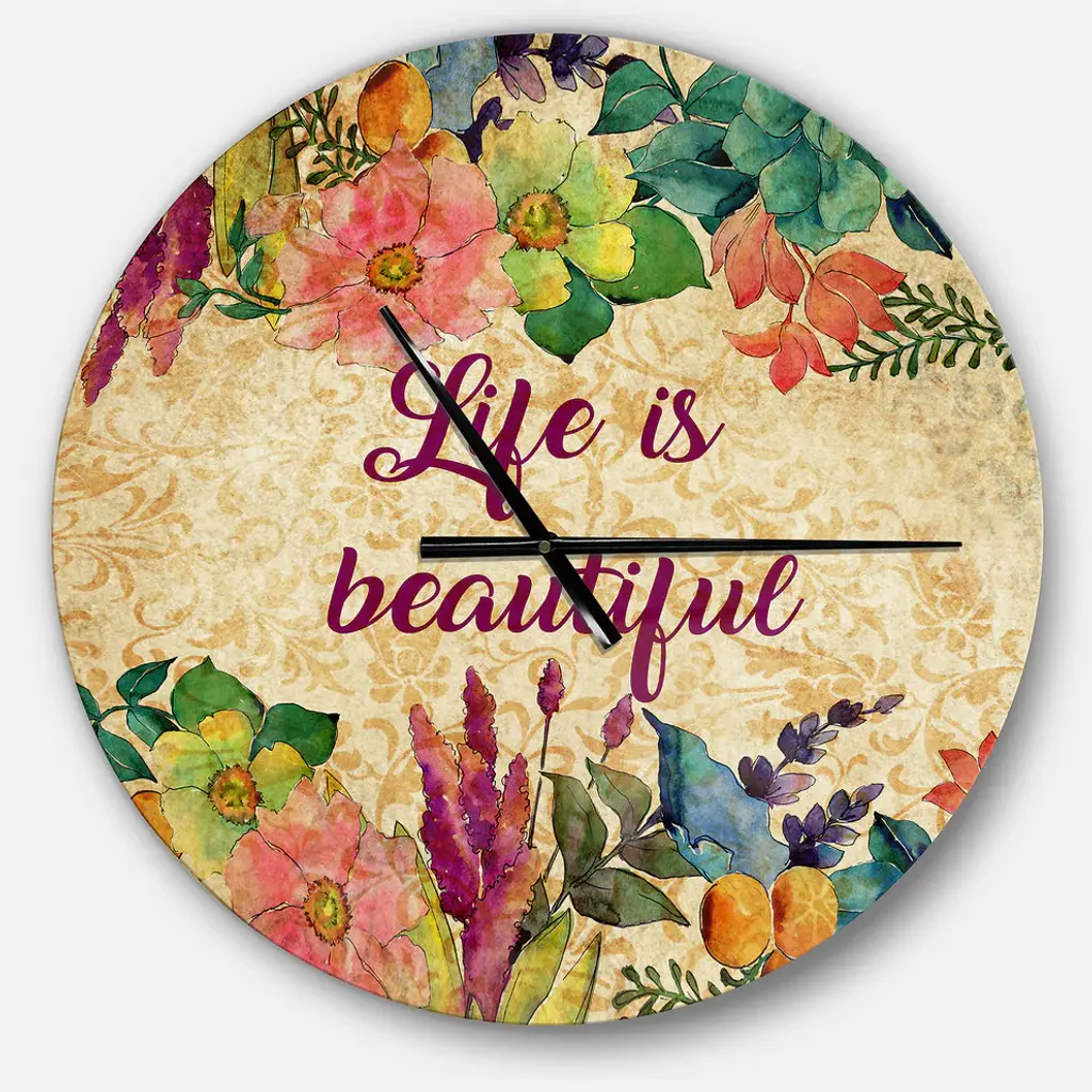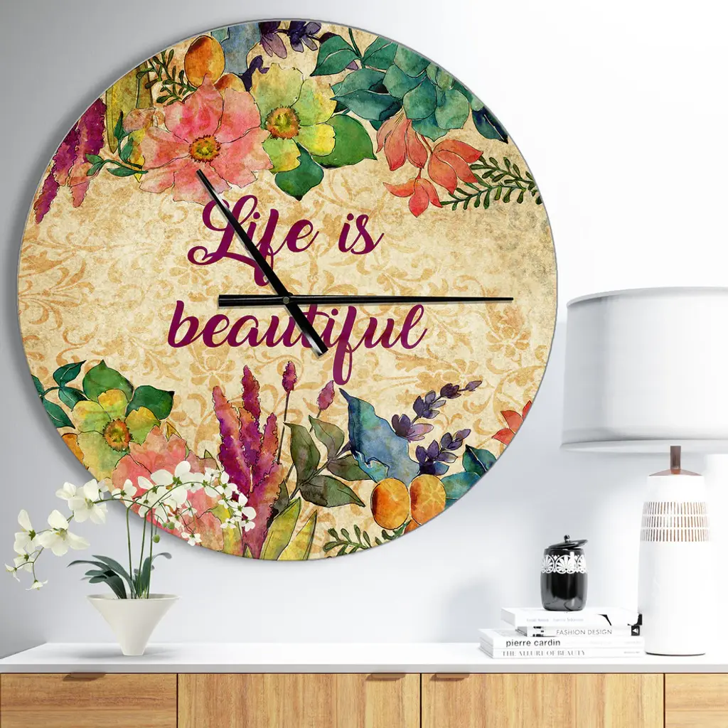 Life Is Beautiful Butterfly Floral Oversized Quote Metal Clock, 23"x23"