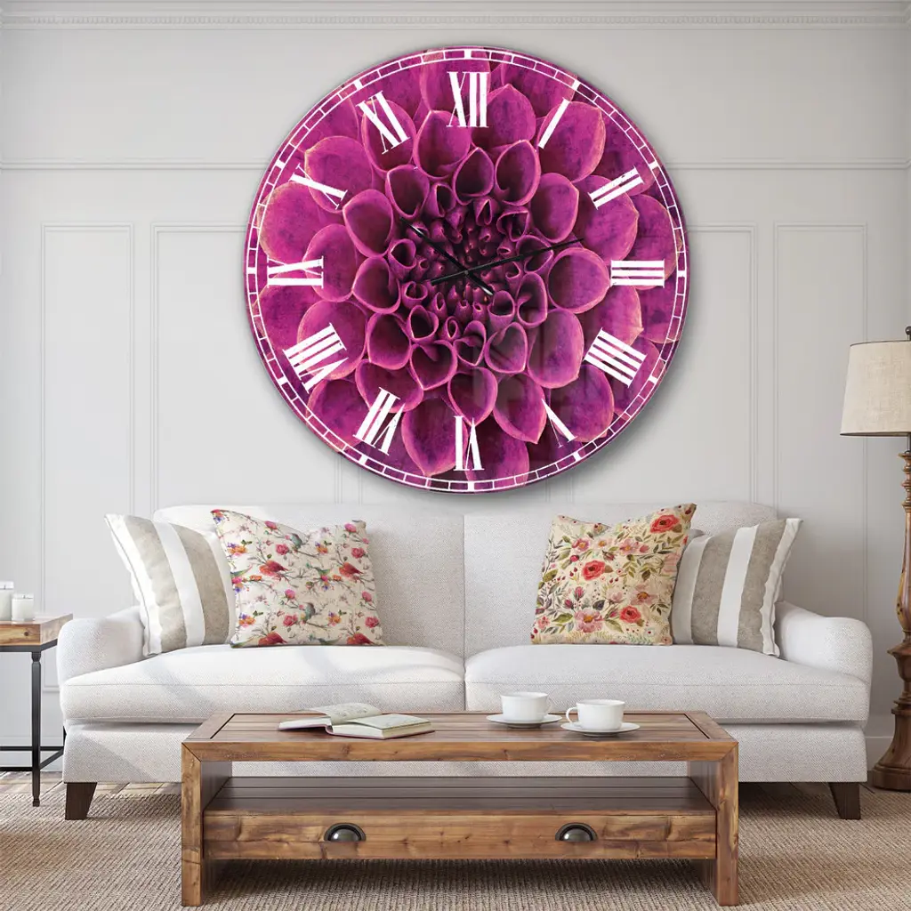 A beautiful addition to any home or office, this Traditional round wall clock is made on 100% solid aluminum. It has a highly reflective glossy finish creating a sleek modern look. This Light Purple Abstract Flower Petals wall clock arrives completely ready to hang on the wall. Simply insert the �AAA� battery included with your order.Available in several size, this Modern Oversized Clock makes it the focal point of any room.Features - Ultra Gloss Coating ensures colors are extra vibrant with light reflection. - 1mm Aluminum grade sheet metal. - 1-inch mounting frame gives the illusion of artwork floating on the wall. - Mounting brackets and instructions are included. - High quality digital images are created directly into a glossy aluminum panel, producing a stunning and captivating print in the glossy finish of the metal. - Looks better than any photo paper and guaranteed to last at least 20 years. - Easy to clean with a microfiber cloth. - "AAA" battery included with your order. - Easy to hang. - Style: Traditional - Material: Metal - Shape: RoundSee Options drop down for available sizes.