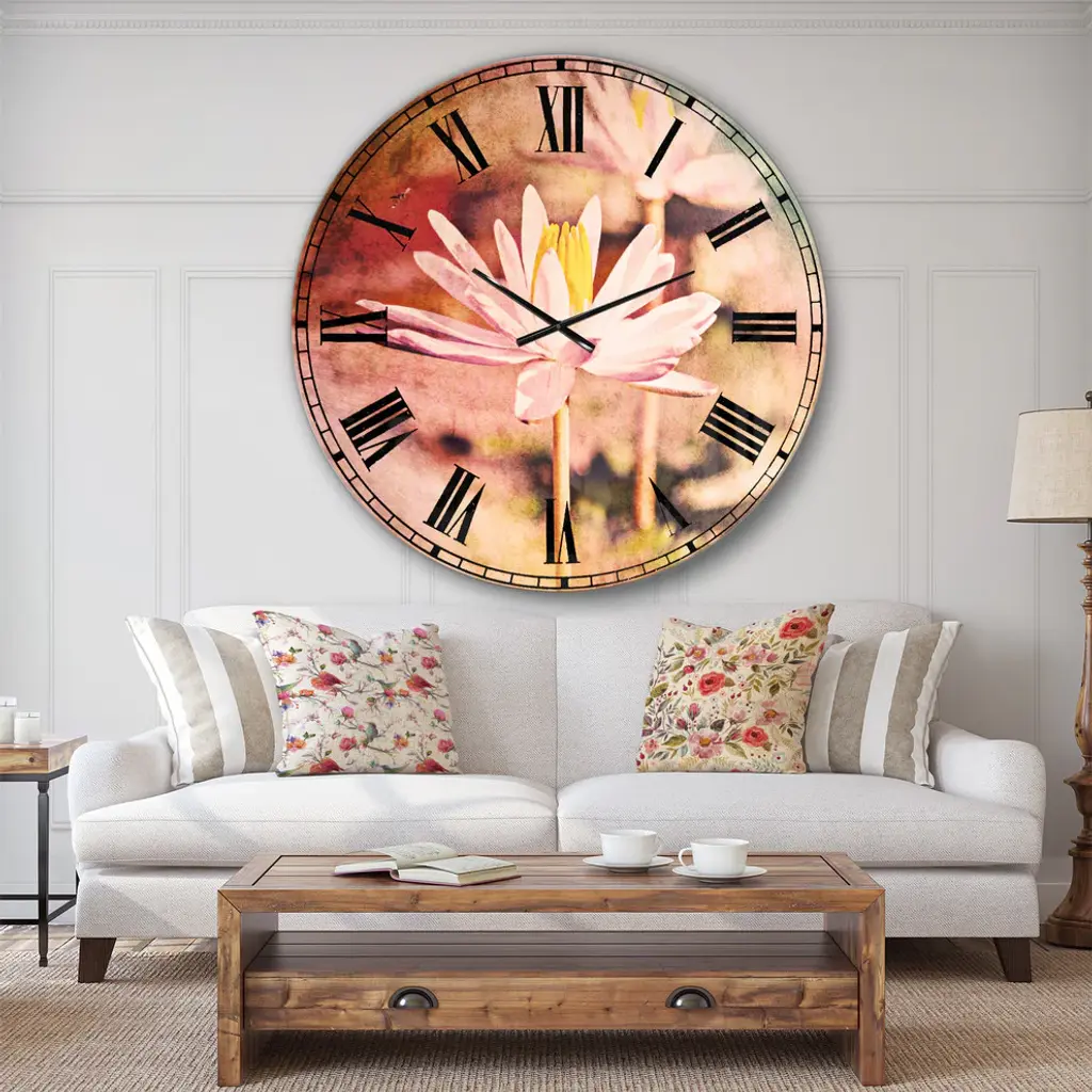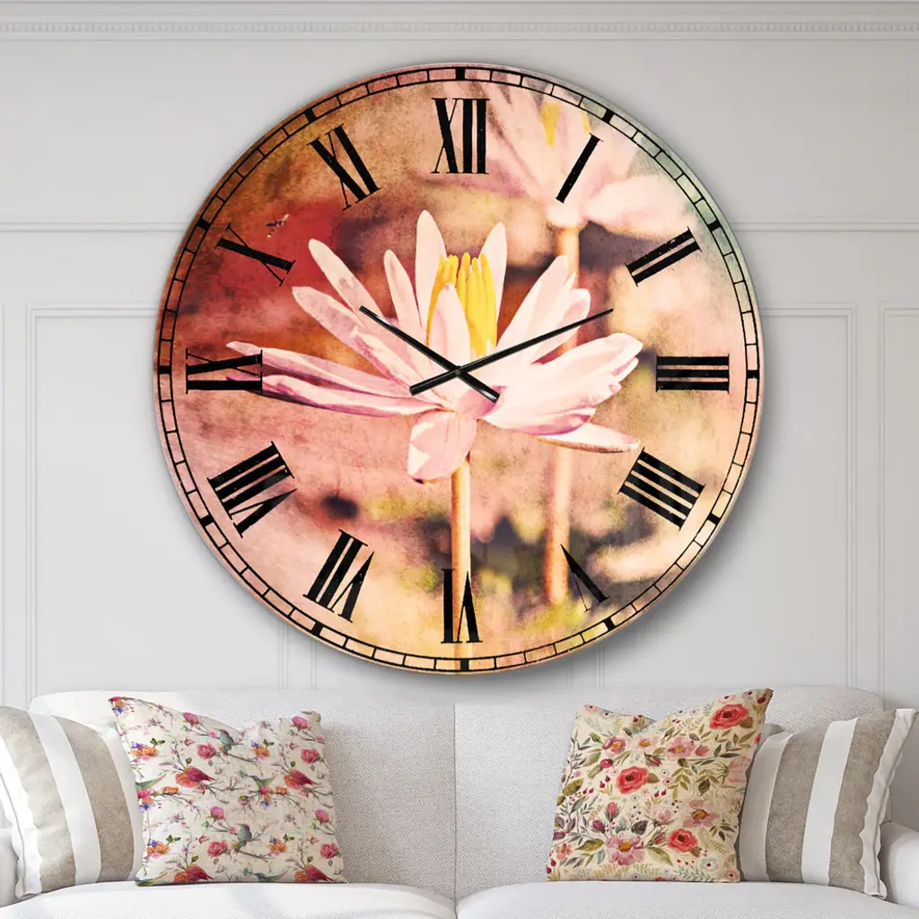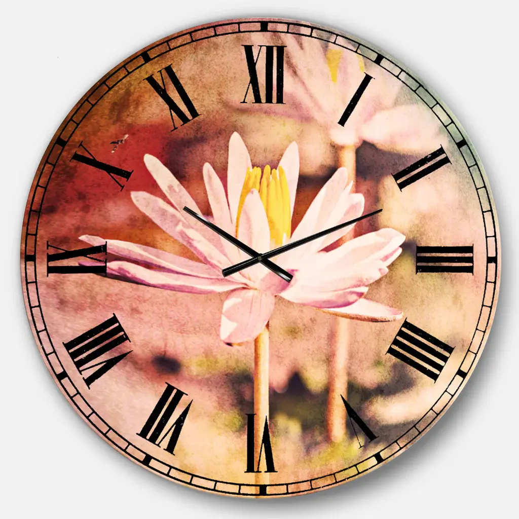 Lotus On Abstract Background Floral Large Metal Wall Clock, 36x36