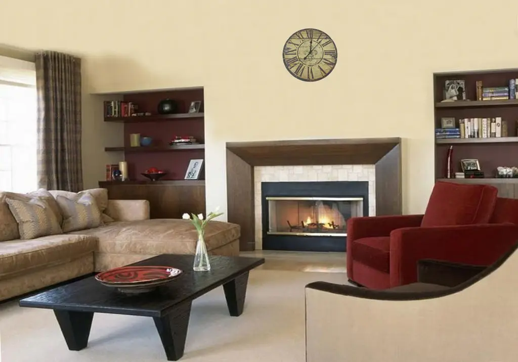French style decorative wood clock with Fleur De Lis design in the middle of the wall clock. Rustic design with dark burgundy brown Roman numerals goes well with most room decors and is also easy to view from distance. Silent and smooth movement. Non -ticking quartz mechanism provides a peaceful environment. This vintage clock requires 1 AA battery (NOT INCLUDED). This handmade clock can be a good gift at housewarming, wedding, and social gatherings. Brown wooden frame measures 23.5"�, Approx. clock weight 6 lbs. 1 Year manufacturer warranty.