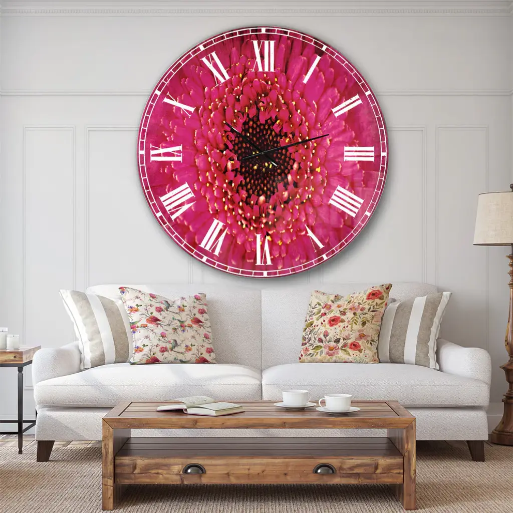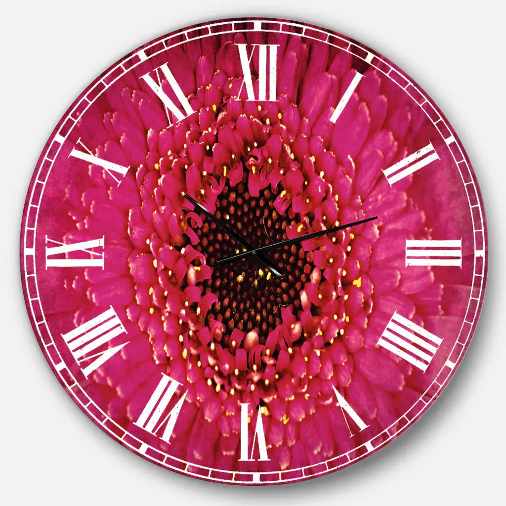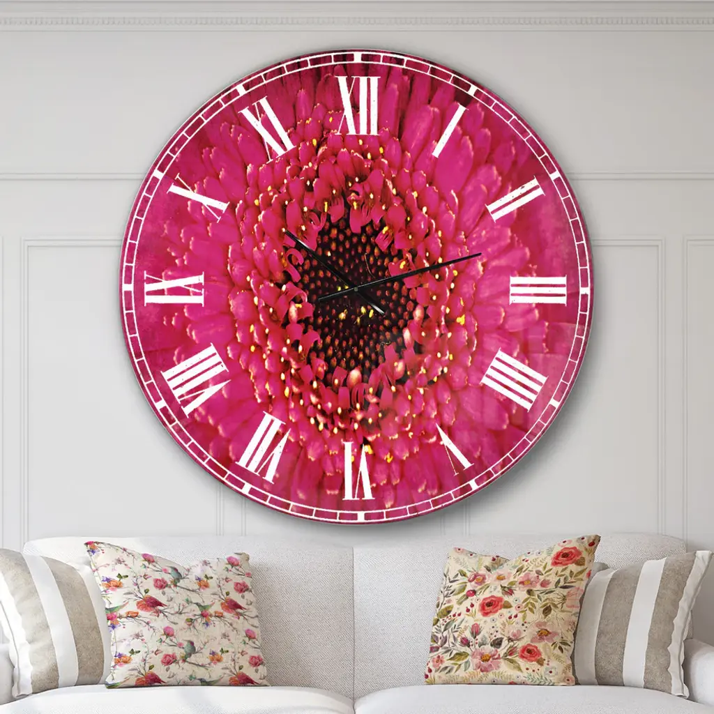 Macro Photo Of Gerbera Flower Oversized Floral Metal Clock, 36x36