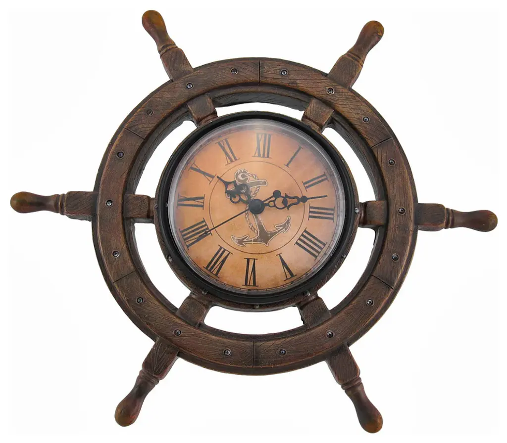 Nautical Charm - This ship wheel wall clock, measuring 11.5 inches in diameter and 1.5 inches in depth, adds a touch of seafaring elegance to any space.Precise Timekeeping - The clock features a 4-inch clock face, quartz-regulated movement, and requires 1 1.5V AA battery (not included), ensuring accurate and reliable timekeeping.Sturdy Craftsmanship - Crafted from durable cold-cast resin, this clock boasts meticulous seafaring details, making it a sturdy and decorative addition to your home decor.Effortless Installation - With easy-access battery housing and a built-in single screw mount (nail or screw not included), installing this clock is a hassle-free task.Coastal Appeal - This ship wheel wall clock is a perfect fit for beach houses or coastal-themed rooms, adding a touch of maritime allure to living rooms, bedrooms, or bathrooms.This ship''s wheel wall clock is a charming addition to any room, especially those with a nautical theme. Measuring 11 1/2 inches in diameter, it features a captivating clock face at the center, spanning 4 1/2 inches in diameter. The face exudes a vintage charm with its antique appearance, embellished with a prominent anchor, classic black Roman numerals, and sleek black second, minute, and hour hands. Crafted from cold-cast resin, this clock is a testament to intricate detailing, hand-painted in vivid hues that highlight its maritime allure. Its quartz movement ensures precise timekeeping, powered by a single AA battery (not included). The ship''s wheel design adds a touch of coastal elegance, making it a delightful accent for kitchens, bathrooms, or any room inspired by the sea. Ideal for smaller spaces, this clock makes for an excellent housewarming gift, capturing the essence of maritime adventures while providing functional decor. Embrace the spirit of the ocean with this meticulously crafted ship''s wheel wall clock, enhancing the ambiance of your home with its captivating design.