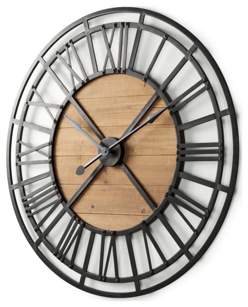If you have the wall space, then you have to get this clock. Lewiston is a massive over sized clock with a matte black metal frame, featuring Roman numerals, with a naturally finished wood center. Uses 1 AA battery (not included).