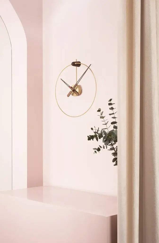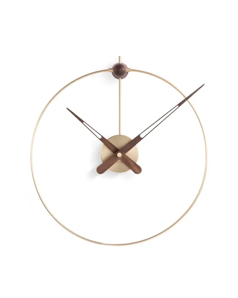 ANDA MICRO is the adaptation of one of the best-selling models to a more compatible size with reduced spaces. The new 50 cm version joins the already existing 70 cm and 100 cm versions. Its fineness remains the same, as well as the wayward minute hand, which goes beyond the limits of the dial. Materials: - Ring in polished brass and walnut hands (MCANG);- Ring in graphite finished brass and walnut hands (MCANT).