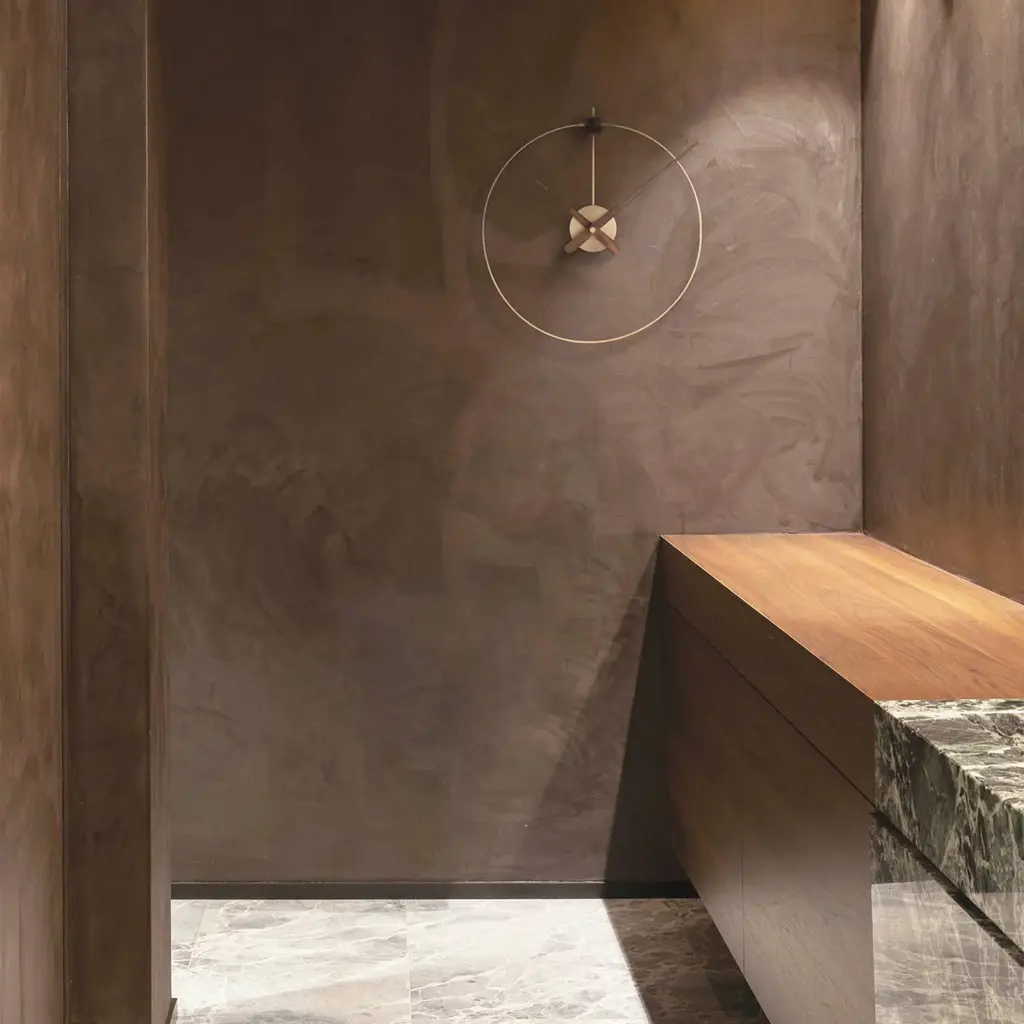 Micro Anda from Nomon distills the minimalist Nordic lines of the larger New Anda model into a compact, more versatile size. Handmade in Spain with whisper-silent German quartz machinery, the cordless clock is powered by a single 1.5-volt battery, and appears to float on the wall, secured via an elegantly simple mounting. The case is encircled by a graphite-finished brass ring, and the minute and hour hands are made of walnut.