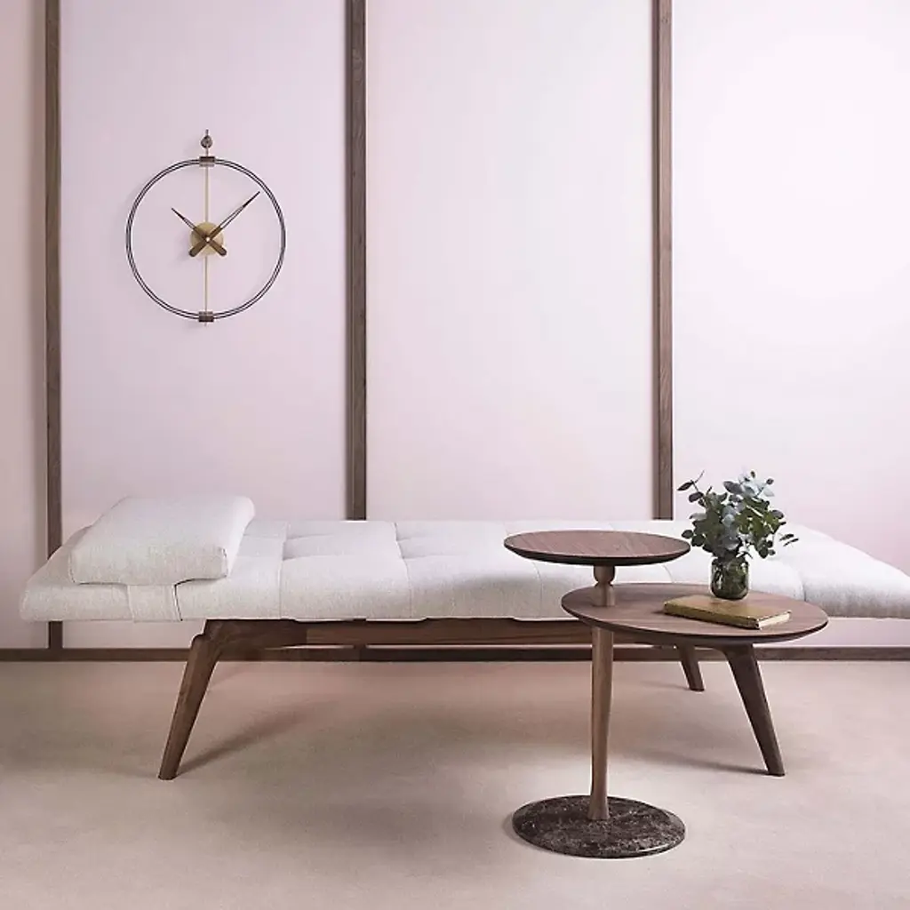 Any time is the right time to incorporate the stunning Micro Barcelona Wall Clock by Nomon into your home décor. Despite its deceptively delicate appearance, the clock is far from fragile, using a doubled fiberglass ring suspended from a single conical attachment point to screen a hub mechanism of graphite-finished brass that offers a presence that is both airy and artful.
