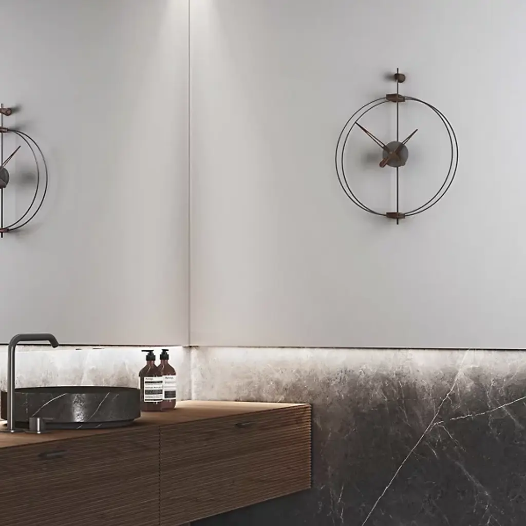 Any time is the right time to incorporate the stunning Micro Barcelona Wall Clock by Nomon into your home décor. Despite its deceptively delicate appearance, the clock is far from fragile, using a doubled fiberglass ring suspended from a single conical attachment point to screen a hub mechanism of graphite-finished brass that offers a presence that is both airy and artful.