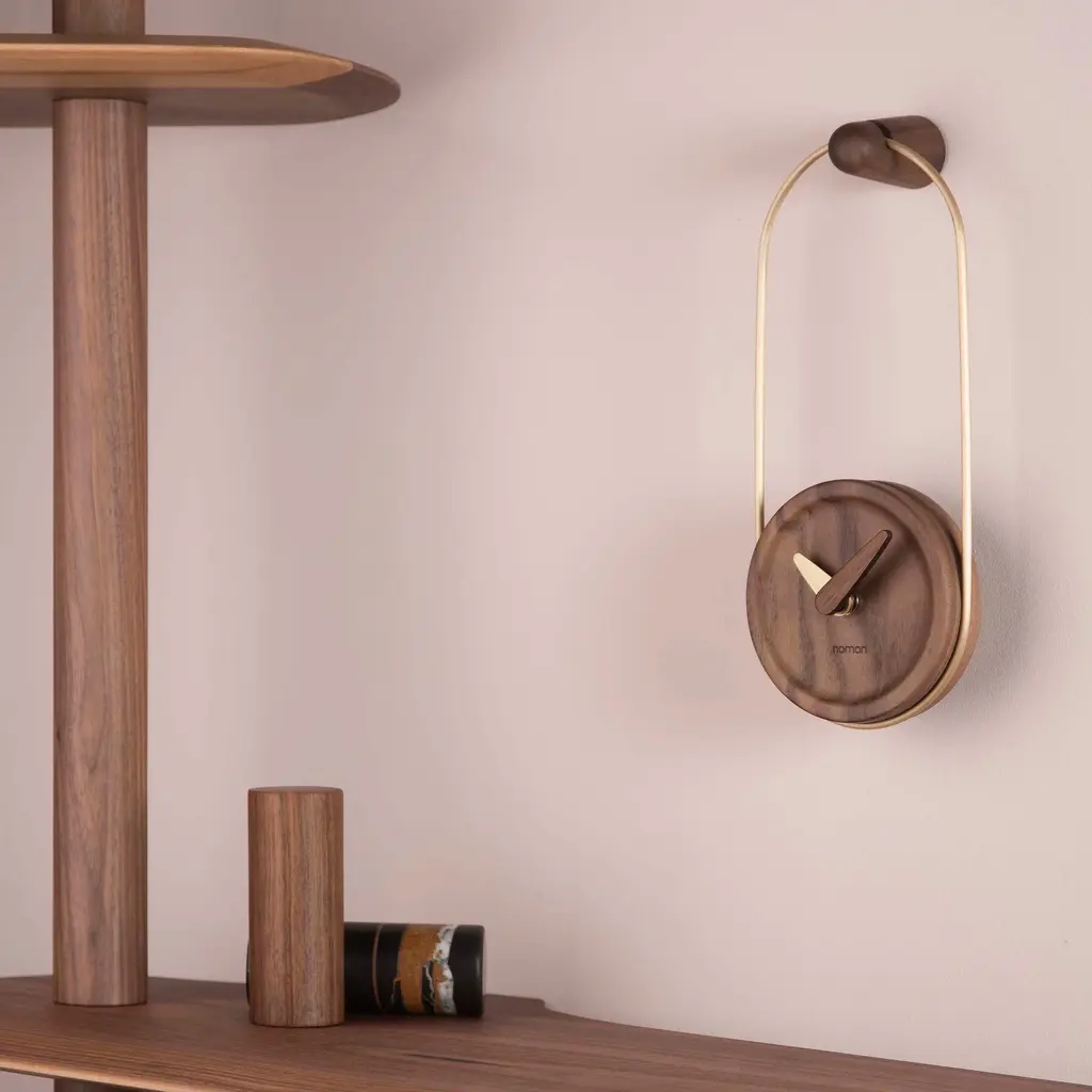 A smaller-scale variation on Nomon’s pendulum-style wall clock, Micro Eslabón is fashioned in solid walnut or oak with an oval frame and accent hand in either polished brass or a graphite finish. It’s perfect to tuck into a shelving unit or fit into in a gallery arrangement while providing precision functionality via its UTS quartz mechanism.