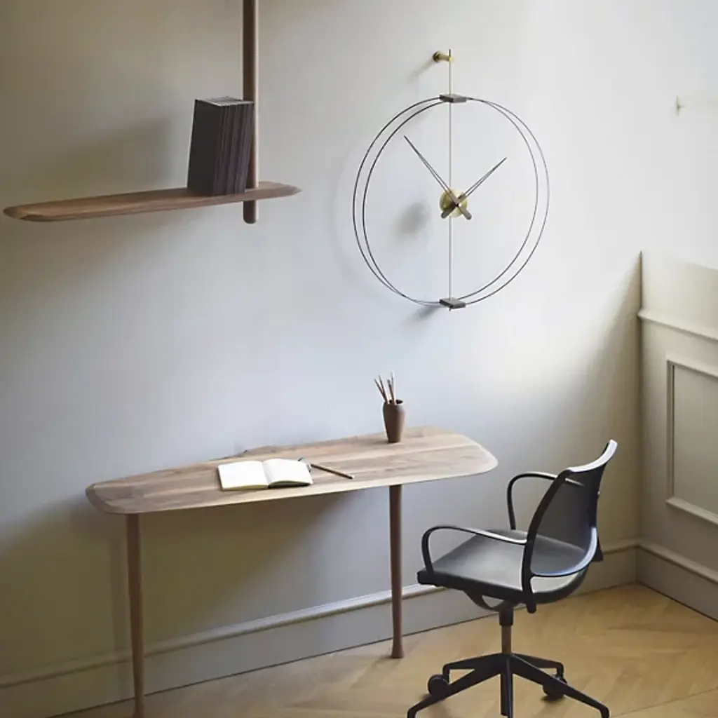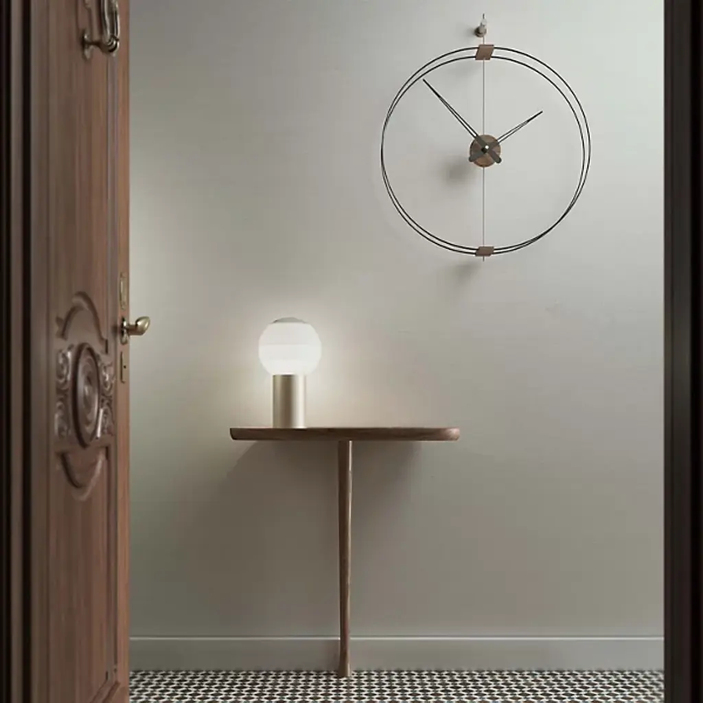 Bring a sense of class to your living room area. Nomon’s Mini Barcelona Wall Clock is smaller than the original but the elegance remains. Features a double rounded fiberglass circle with a walnut wooden center piece topped off with beautiful black lacquered wood hands. A great option for functional wall décor.