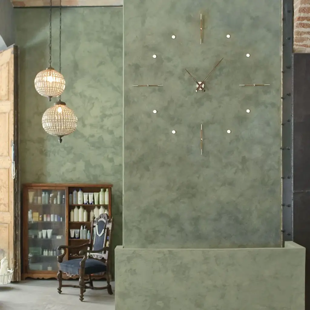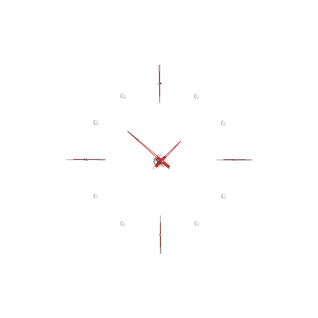 Graphically marking the quarter-hours, Mixto features clock hands and time-signal markers affixed directly to the wall behind in a striking mix of contrasting materials. Available in 3 diametric sizes as a functional and decorative focal point to suit varied interiors, Nomon’s timepiece is powered by a German quartz mechanism.