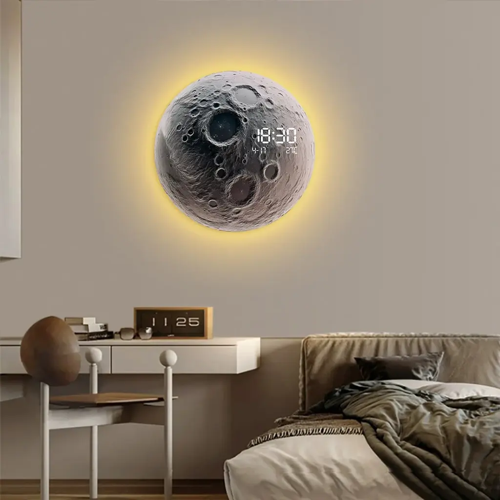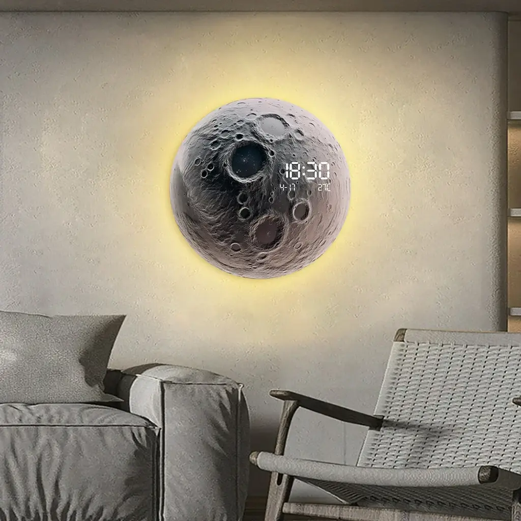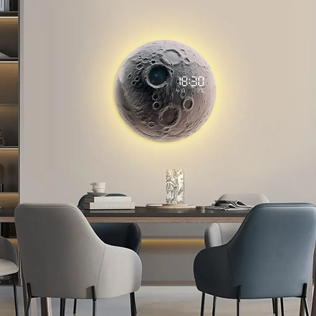 Modern And Unique Led Wall Clock Moon-Inspired Home Decor
