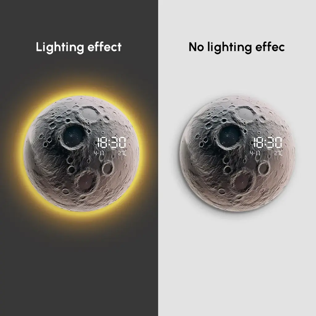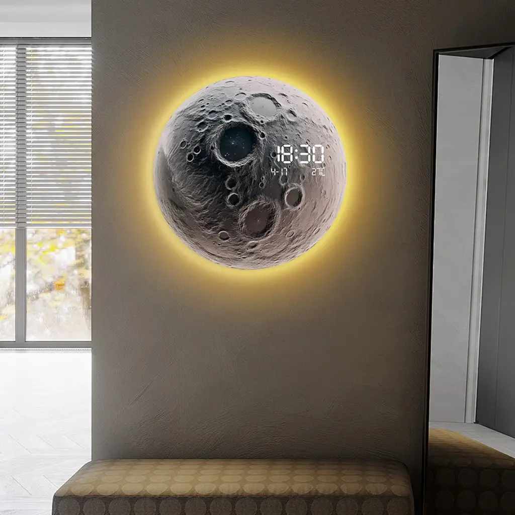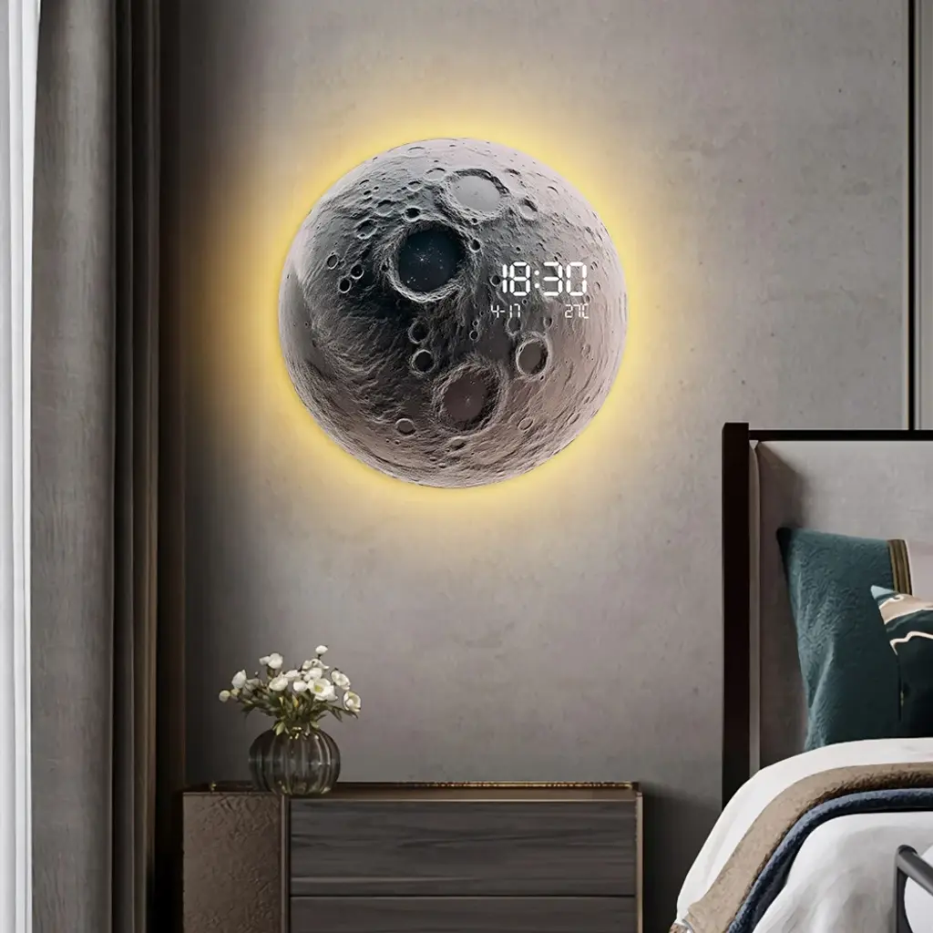 Modern And Unique Led Wall Clock Moon-Inspired Home Decor