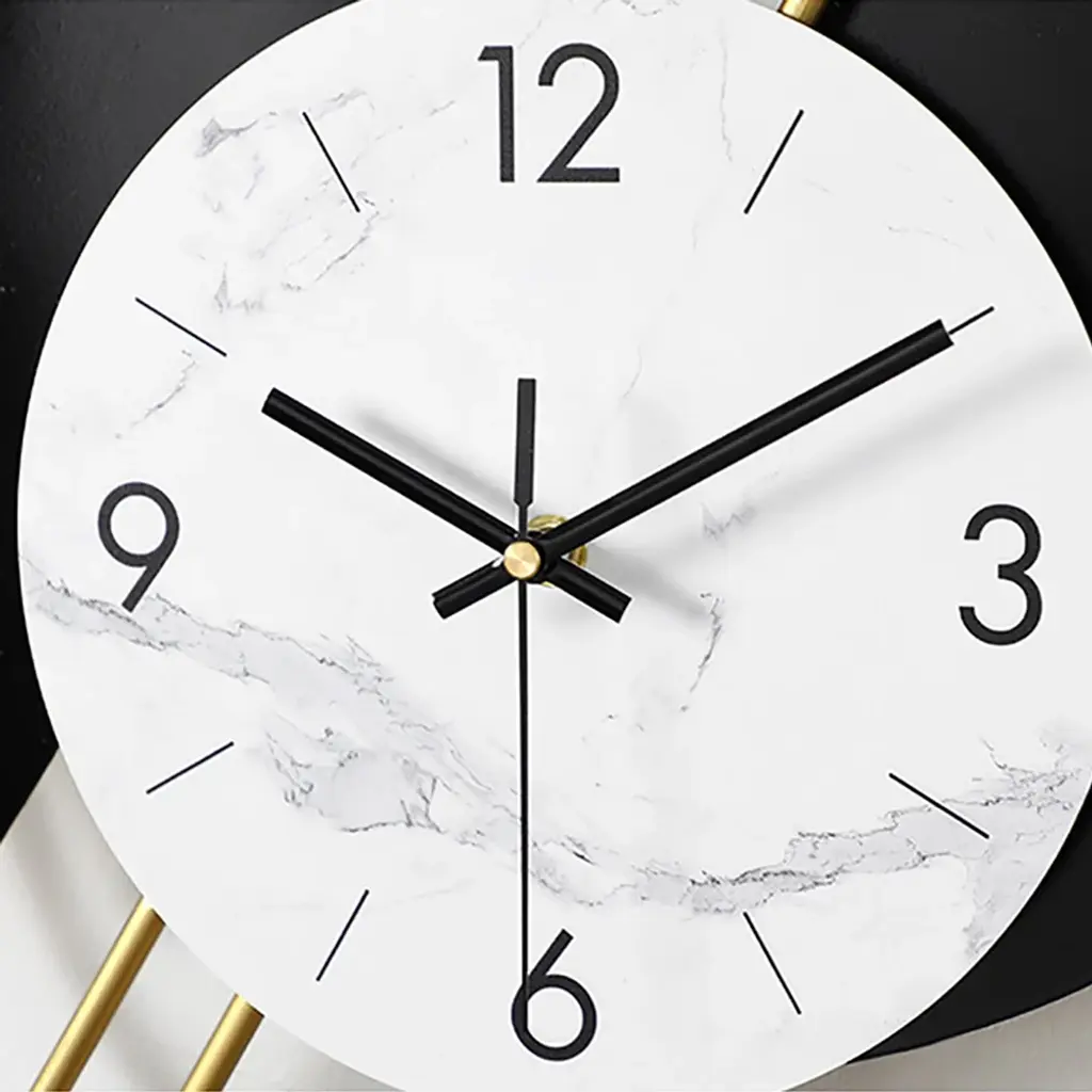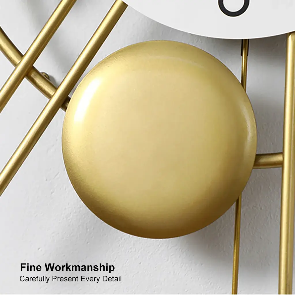 This wall clock has a round-shaped dial and has a distinctive whole design, bringing a Nordic light luxury style to your wall. It has golden pendulums and black Arabic numerals that help anyone to read the time easily. The design is delicate iron craftsmanship that gives it an attractive outlook. Made of metal, it is a unique ironwork, which is practical. Therefore, it is a perfect blend of style and functionality. *After installing the battery, pls manually give the pendulum a force to make it swing left and right, and then the pendulum will generate a magnetic pole so that it will continue to swing. Warmly remind that, pls adjust the vertical direction of the hook to avoid friction between the pendulum and other parts of the clock shelf, otherwise it will waste electricity and reduce the swing time.