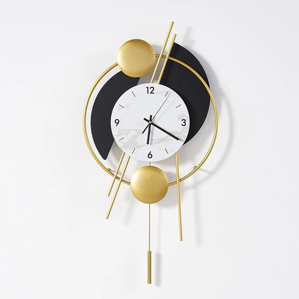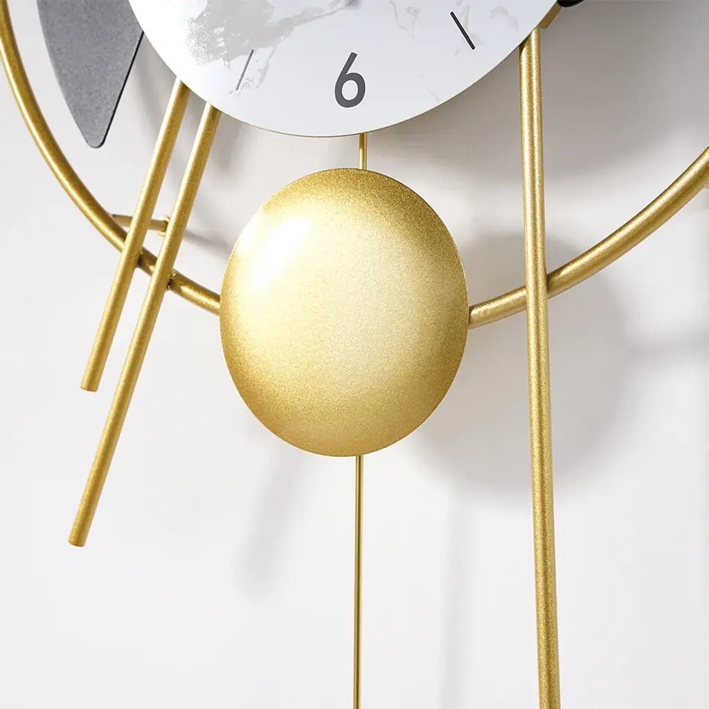 Modern Distinctive Metal Wall Clock With Gold Pendulum