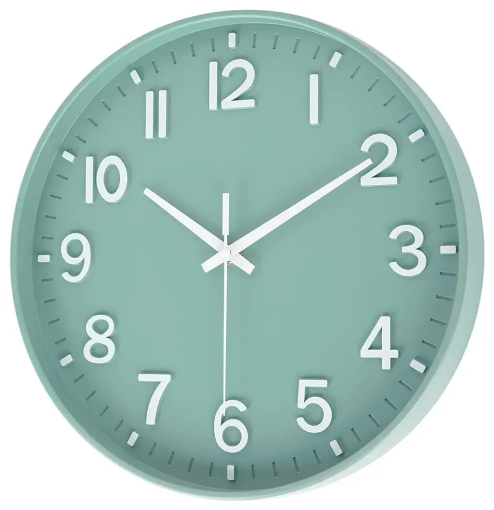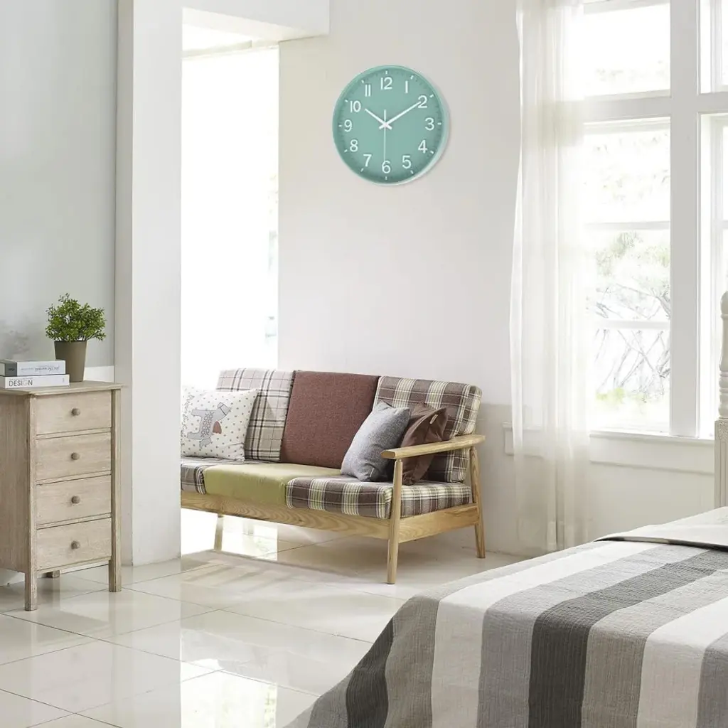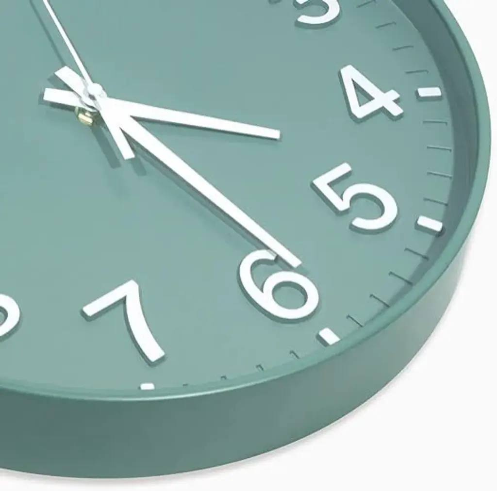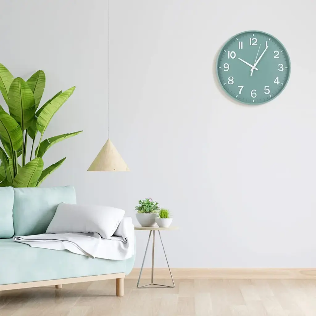 Color:: Bean GreenDisplay Type: AnalogStyle: ModernSpecial Feature: Silent ClockProduct Dimensions:: 12"W x 12"HPower Source:: Battery PoweredAge Range (Description): AdultRoom Type: Kitchen, Living Room, Bedroom, Home Office, Kid''s RoomShape: Round Material"”"”ABS plastic dial and HD glass make it easy to clean and keep dust away.Quartz movement"”"”less error and damage rate.Design "”"” 12 inches / 30 cm in diameter, weighs about 600 grams. The large Arabic numerals are easy to read and the HD glass cover on the front guarantees a perfect view.Round modern wall clock design suits bedroom,living room,kitchen,school,classroom and office decor. It is also an excellent gift for family and friends. No Ticking "”"” The silent wall clock does not emit any annoying ticks, allowing you to enjoy a quiet and comfortable environment in which to sleep and work. Battery Operated "”"” Please use 1 x AA carbon batteries (Note:The battery is not included.) BETTER SERVICE "”"” If you have any dissatisfaction with the 12-inch wall clock, please feel free to contact us, HZDHCLH provides return and replacement services within 90 days to ensure your satisfaction.HZDHCLH modern wall clock is made of sturdy ABS plastic and glass. The round dial and 3D numbers make it easier for you to read the time.Please prepare AA carbon batteries in advance before use (batteries are not included). In order to ensure the accuracy of the quartz movement wall clock and extend the life of the wall clock, please do not use alkaline batteries and rechargeable batteries. If you have any questions during use, please feel free to contact us.