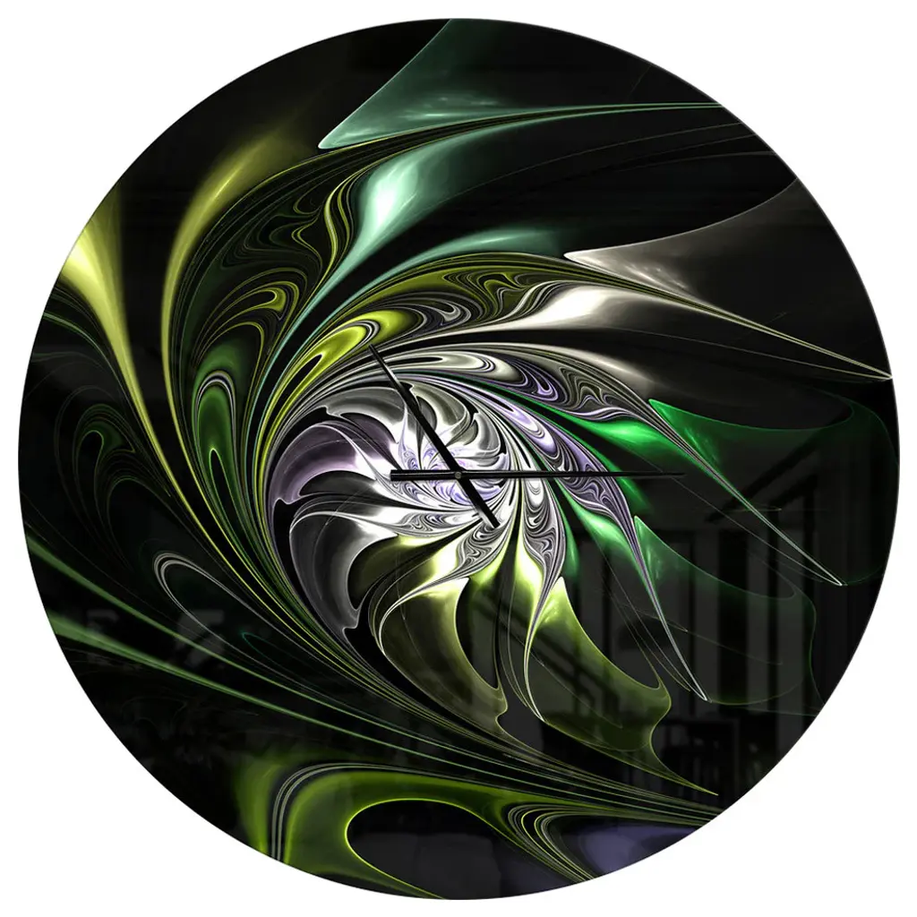 A beautiful addition to any home or office, this Modern & Contemporary round wall clock is made on 100% solid aluminum. It has a highly reflective glossy finish creating a sleek modern look. This Multi Colored Green Stained Glass wall clock arrives completely ready to hang on the wall. Simply insert the �AAA� battery included with your order.Available in several size, this Modern Oversized Clock makes it the focal point of any room.Features - Ultra Gloss Coating ensures colors are extra vibrant with light reflection. - 1mm Aluminum grade sheet metal. - 1-inch mounting frame gives the illusion of artwork floating on the wall. - Mounting brackets and instructions are included. - High quality digital images are created directly into a glossy aluminum panel, producing a stunning and captivating print in the glossy finish of the metal. - Looks better than any photo paper and guaranteed to last at least 20 years. - Easy to clean with a microfiber cloth. - "AAA" battery included with your order. - Easy to hang. - Style: Modern & Contemporary - Material: Metal - Shape: RoundSee Options drop down for available sizes.