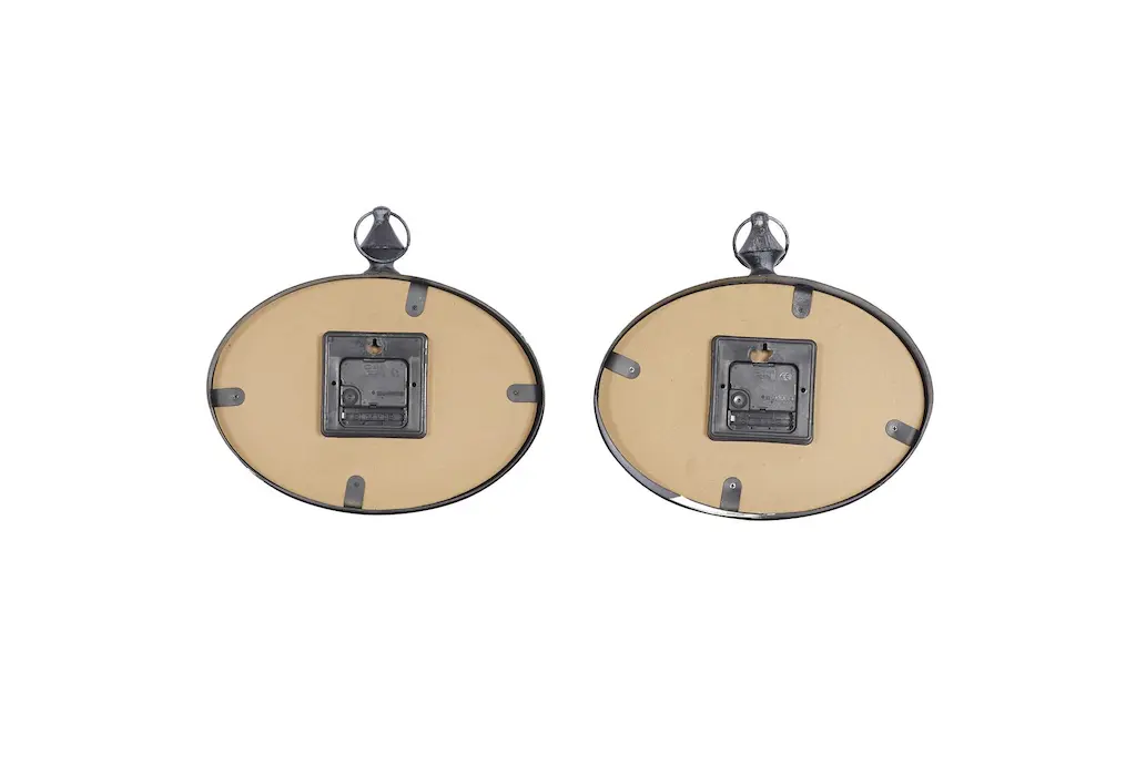 Natural Cream Round Black Metal Oval Wall Clock | Curved | Set Of 2
