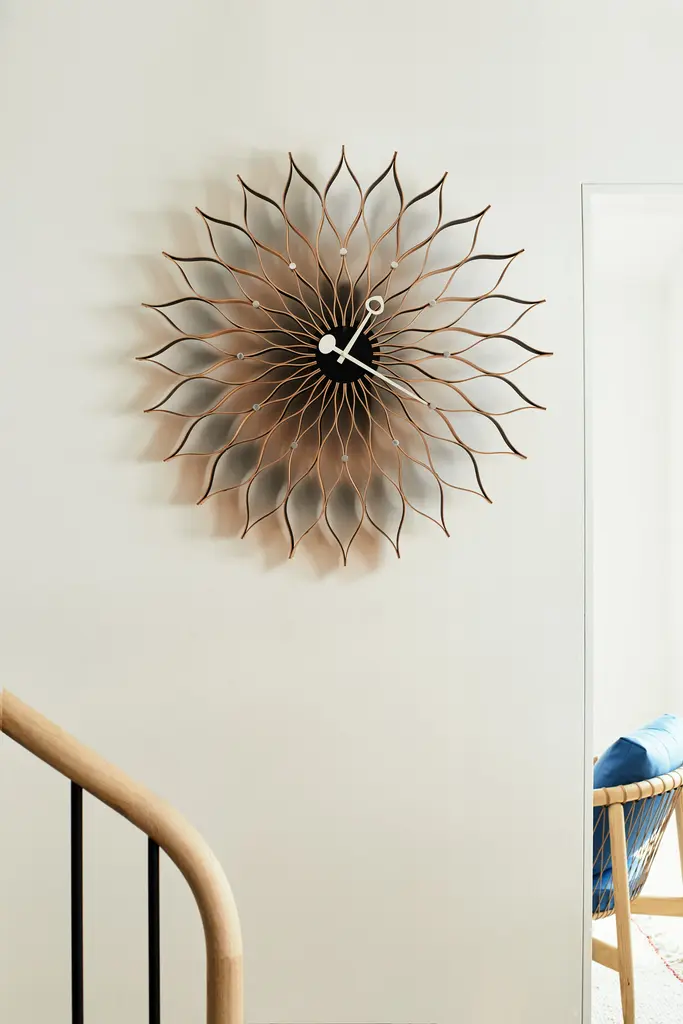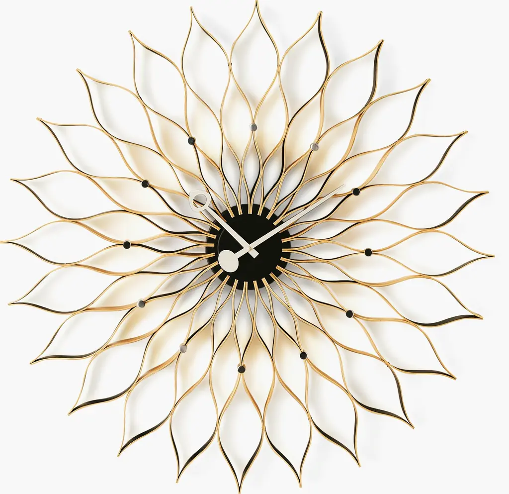 The large-scale Sunflower Clock (1958) is one of more than 150 clocks designed by George Nelson Associates for the Howard Miller Clock Company, which sold them from 1949 into the 1980s. Nelson Associates, first launched as a studio by George Nelson in 1947 in New York City, employed some of the most celebrated designers of the time, including Irving Harper, Don Chadwick and John Pile, all of whom contributed to the clocks. Until its closure in the mid-1980s, the company designed a range of products for many clients, including Herman Miller, Inc., which was established in 1923 by Howard Miller's brother-in-law, D.J. De Pree. A bit of family history: De Pree also founded the Herman Miller Clock Company in 1926 but turned it over in 1937 to Howard, who renamed it. As for the identity of Herman Miller, he was Howard's father and De Pree's father-in-law. The Miller companies are not affiliated but stand across the street from one another in Zeeland, Mich. The Sunflower Clock appeared in the original Miller brochure as Model 2261. This is an authentic Nelson Clock, produced by Vitra Design Museum. Uses one AA battery (included). Made in Poland.