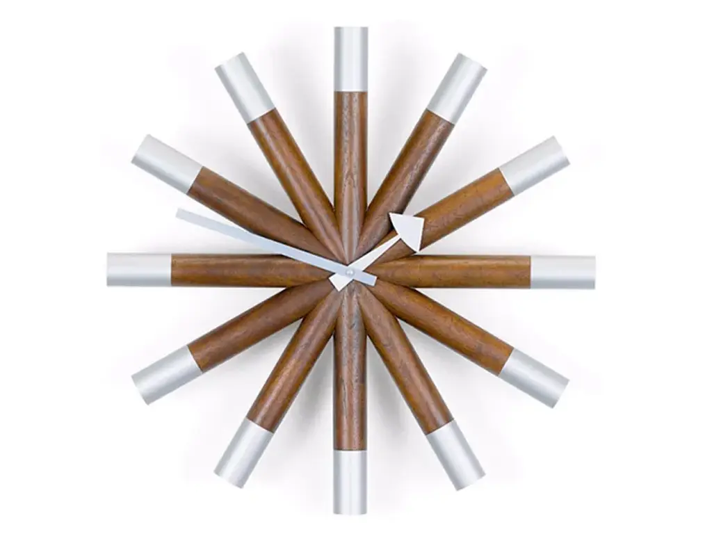 With his collection of Wall Clocks (1948–1960), George Nelson conceived a wide array of timepieces, some of which have since become icons of 1950s design. High-quality quartz clock movement, 1.5 volt battery included. Arrives ready to hang.