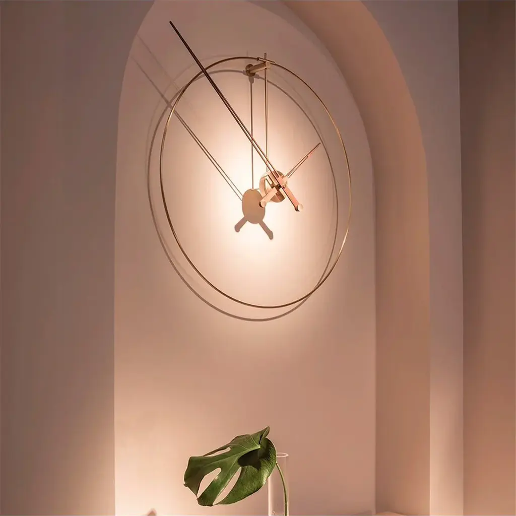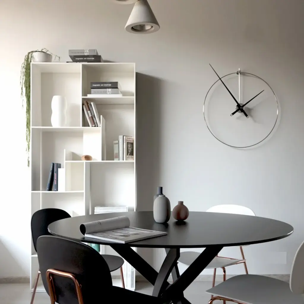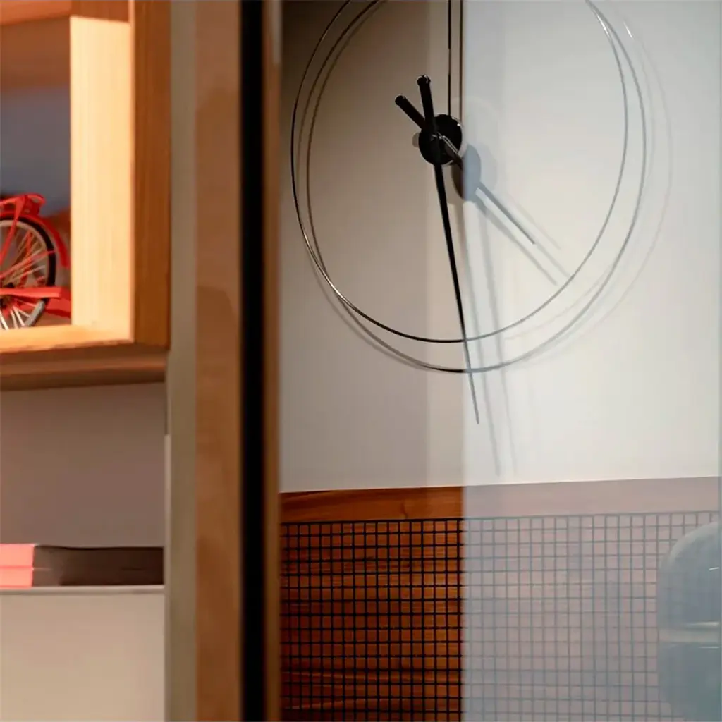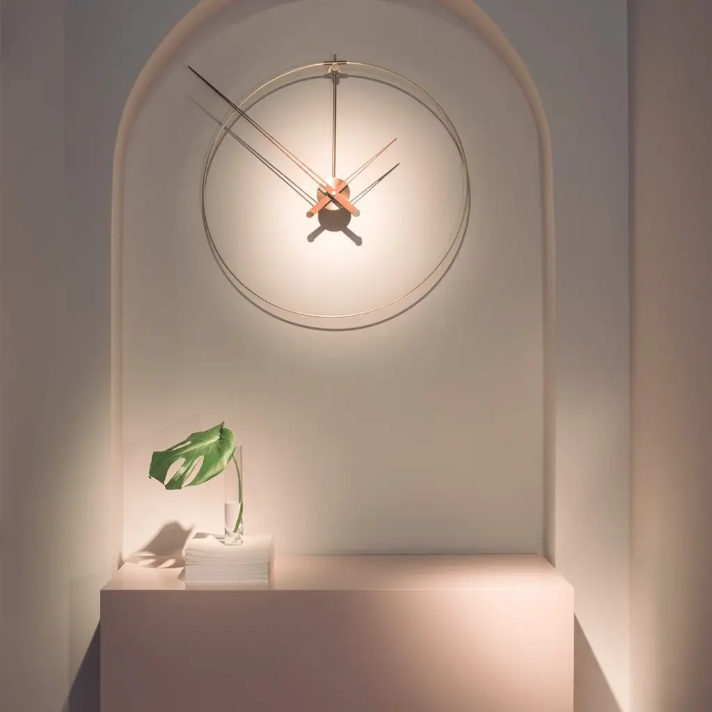 Featuring a suspended metal ring that exudes refinement through the very simplicity of its form, New Anda from Barcelona's Nomon offers a sleek wall clock to suit a living room, hospitality space or office setting. Choose from a version with the circular structure in chrome with black-lacquer needle hands or in brass with genuine walnut. Elevating a functional essential to a modern statement, the handcrafted timepiece is battery-powered and made in Spain with a German precision quartz moment.