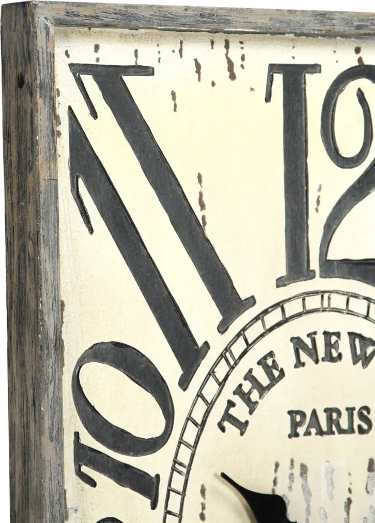 New era paris clock in antique cream finish. She''s a beauty!Dimensions (in)23.5W x 36.5H x 2DFinishAntique CreamMaterial(s)MDF, Radiata PineFeatures- Chic design- Distressed cream finishAbout the Manufacturer Zentique prides itself in providing products that give a chic antique look and feel. Their designs are purposely created to have a distressed look. Creating a distressed look can include but not limit to rusting, paint chipping, unfinished look, cracks, and air bubbles in glass vases. Please keep in mind that some may look more heavily distressed. This look was created intentionally to allow customers to have and own an antique piece of furniture without the years of aging and weathering.