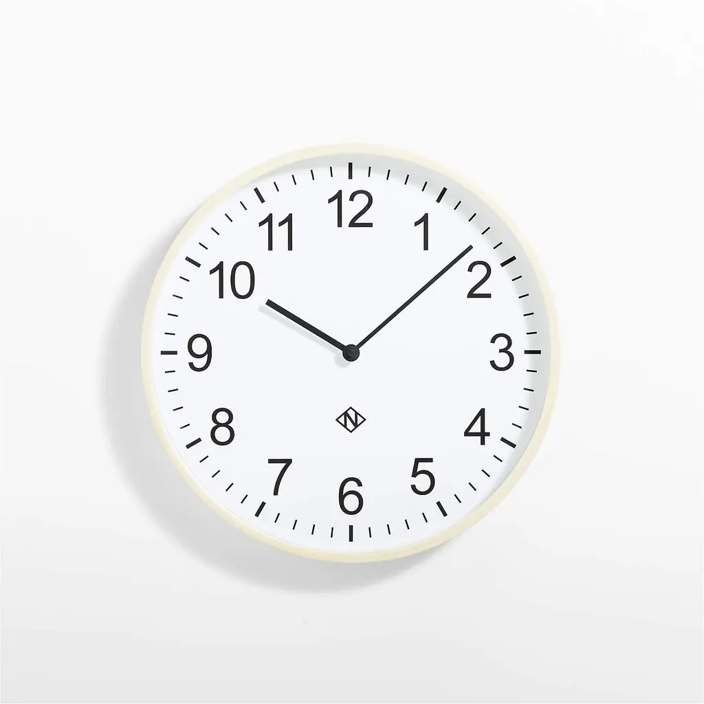 Mark the passing of time in modern style with our exclusive wall clock. Framed in light wood, the timepiece presents crisp numerals and minute graduations in black on white, with slender, elongated hands noting the time. We love the way this clean and classic wall clock creates a focal point in a kitchen, home office, entryway or other busy spot in the home.