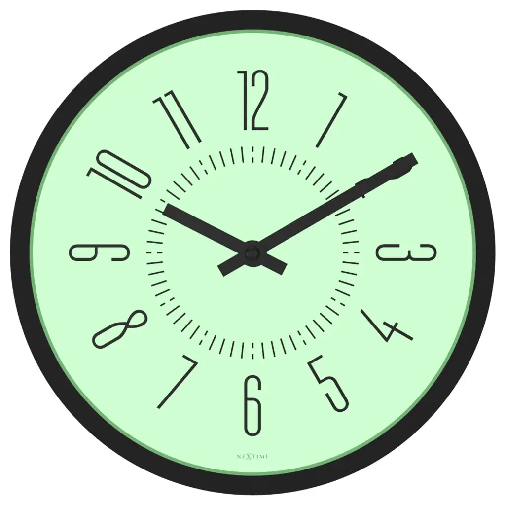 The NeXtime "Luminous" wall clock has a white face with glow-in-the-dark technology. This clock is perfect for any room, but especially the bedroom, due to it''s silent movement (so no ticking sound) and the dial that softly glows in the dark but does not get too bright! The clock needs to be hung in the daylight to be able to charge and will then display a gentle radiance in the dark. This clock is 13.8" (35 cm), made of metal and glass and runs on 1 AA battery (not included).