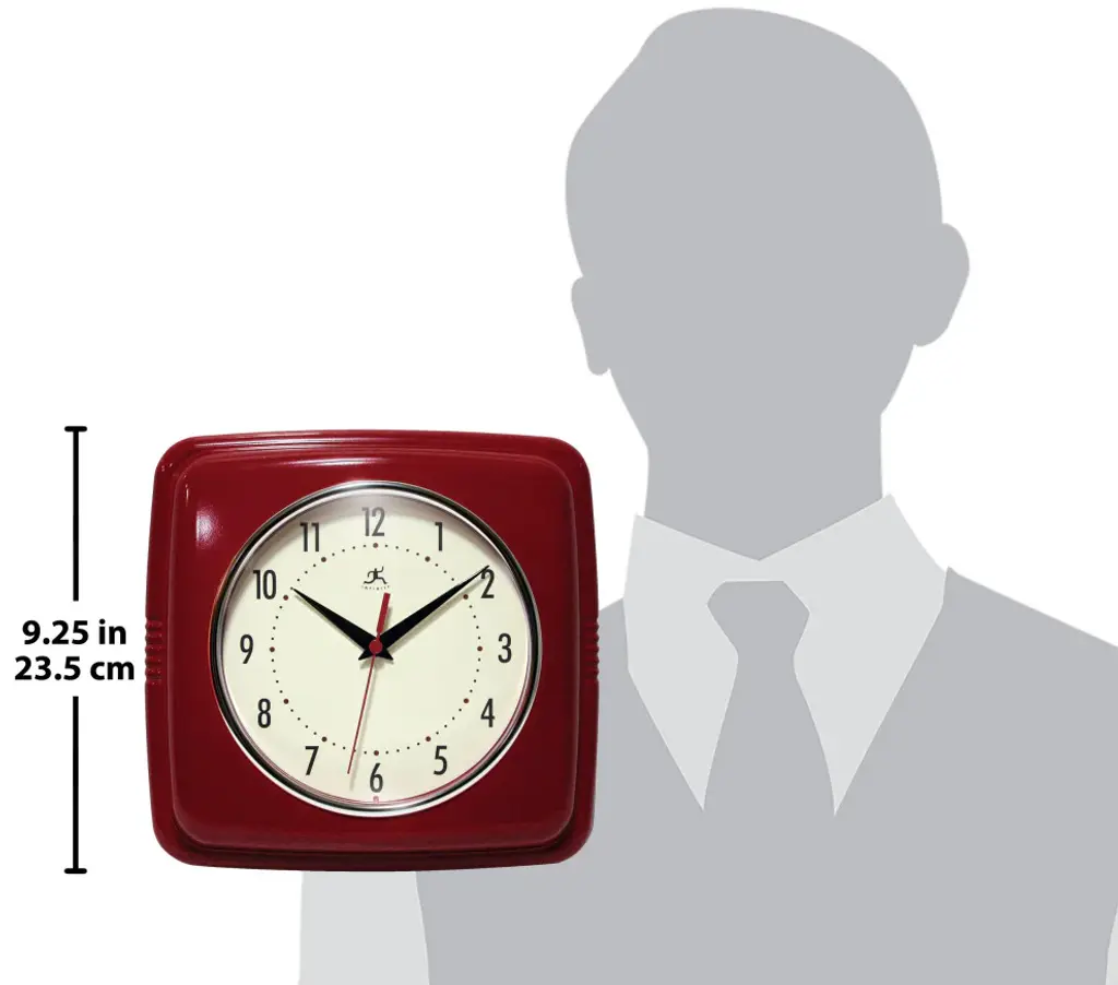 This large 22" classic wall-mounted clock features an oversized round frame. The vintage design fits perfectly in with any home decor. Easy to read. Powered by 1 A battery, included. Overall dimensions: 22.44 X 22.44 X 1.85 inches.