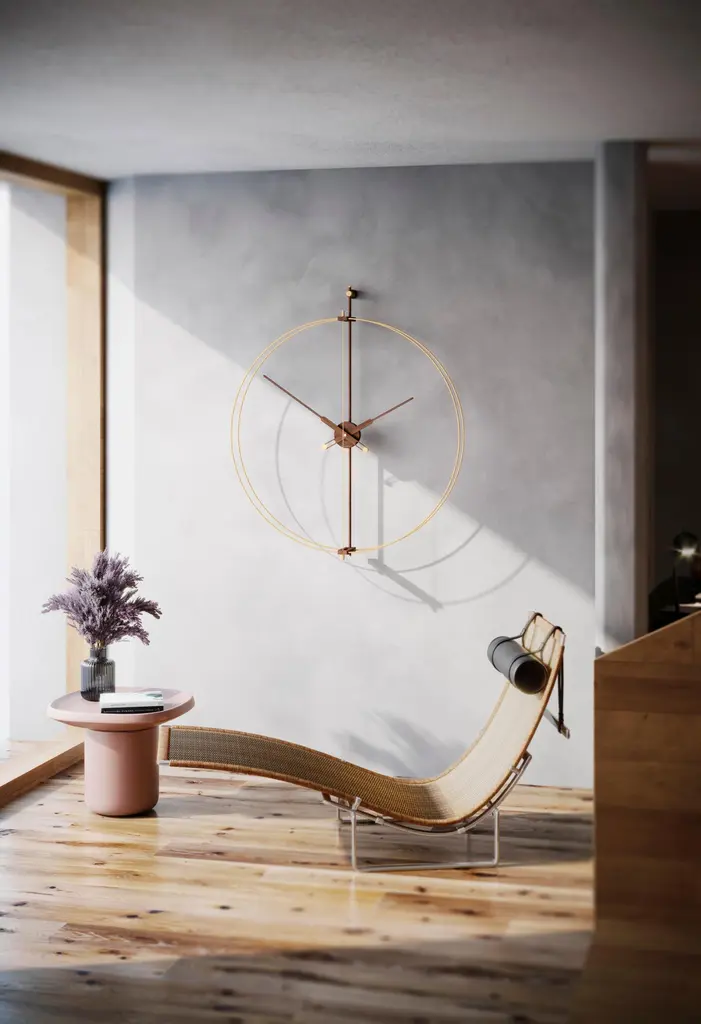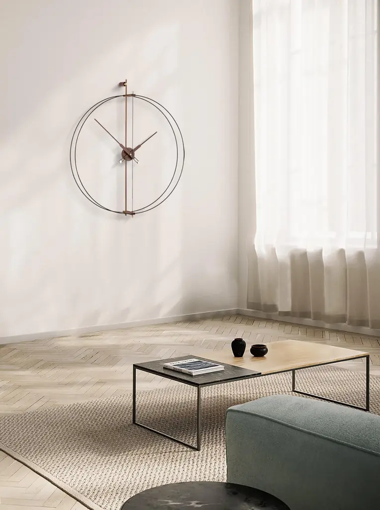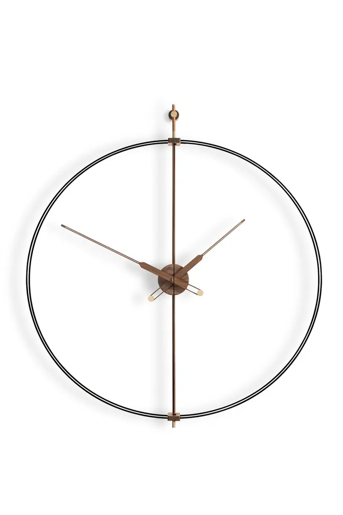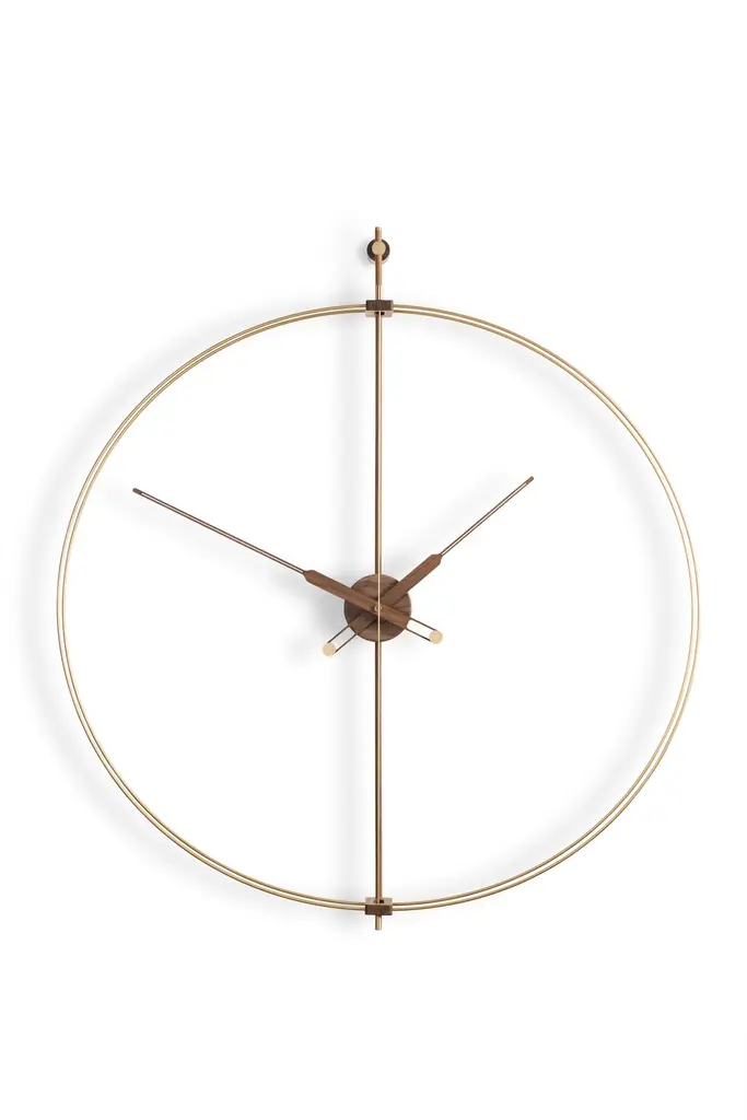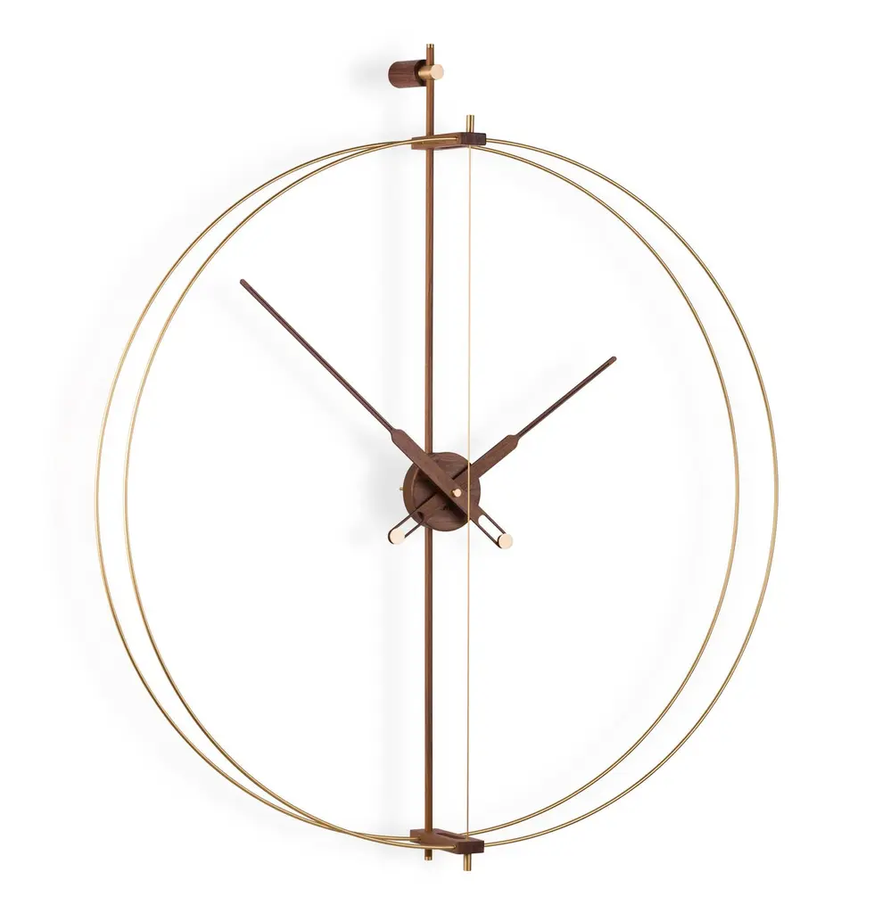 Renovation of one of the most representative models of nomon, the iconic Barcelona clock. Incorporating a more glamorous style in the design.It stands out for the brass finish in its fiberglass double ring.Rings in brass finish, hands and central box in walnut wood.Rings in black fiberglass, hands and central box in walnut wood.Rings in black fiberglass, hands and central box in oak wood.