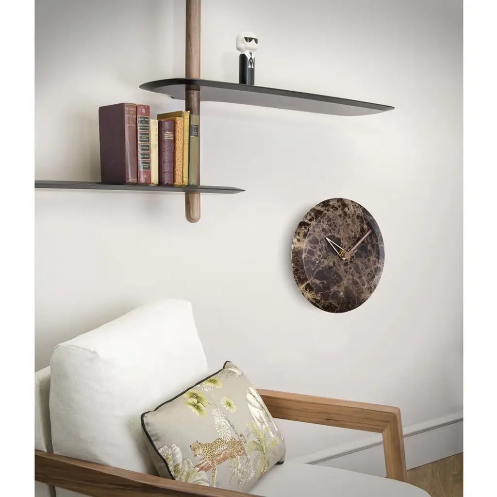 Marble becomes the main character in this new collection which along with walnut and polished brass hands makes the clock become a sculpture. In order to achieve refinement in volume the body of the clock is divided in two parts that are handmade separately: a wooden base combined with a marble front.Specifications:Creator: Andres MartinezDesign Period: From 2000Country of Manufacture: SpainStyle: Industrial ContemporaryMade by HandMaterials: Fiberglass Graphite WalnutColor: Black and Gold or Brown Brass and WalnutSize (h x ) in (cm): 9 x 32
