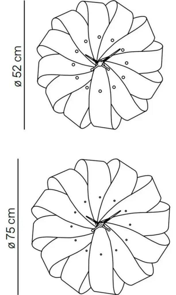 The modern Ciclo wall clock is composed of curved walnut or natural oak leaves that emulate an open flower in all its splendor. For the first time Nomon works with subtly folded natural wood leaves. The silhouette connects us with nature emulating an open flower in all its splendor. Hands in walnut ash oak finish or polished brass.Specifications:Composed of curved walnut or natural oak leavesBody: oak walnut or mixed wood.Hands: Walnut wood or polished brass.Mechanism: German UTSDimensions: ø52cm or ø75cm.