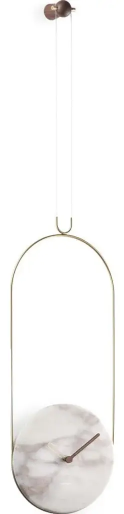 Add a decorative touch to your modern home with the Colgante Walnut Wall Clock by Nomon. From Spanish designer Andres Martinez this minimalistic piece starts with a slim metal ring that smoothly upholds the rounded clock. Crafted from solid walnut wood the clock presents a smooth and natural surface with matching wooden and polished metal hands adorning its face.Specifications:Designed by Andres MartinezMaterial: WoodRing Color: GoldItem: Width 11.8" Height 31.1" Depth 3.14"Manufactured In: SpainWeight: 4.41Lbs
