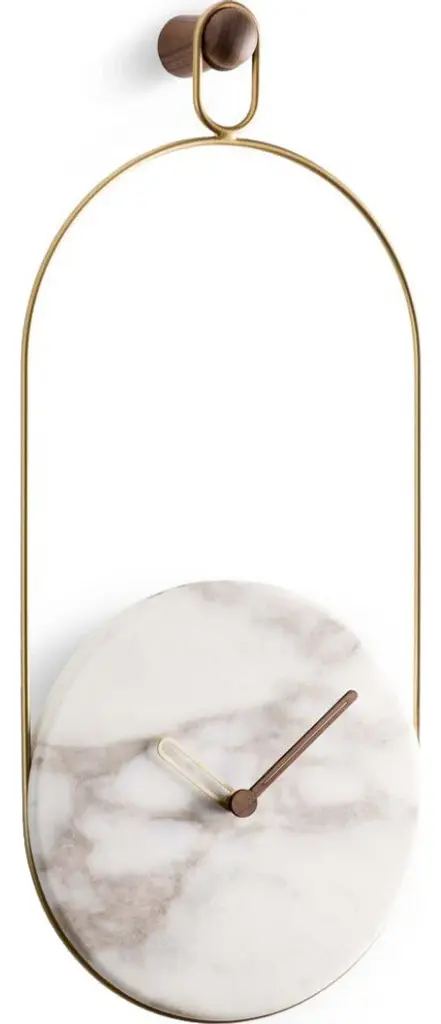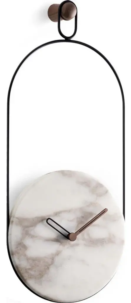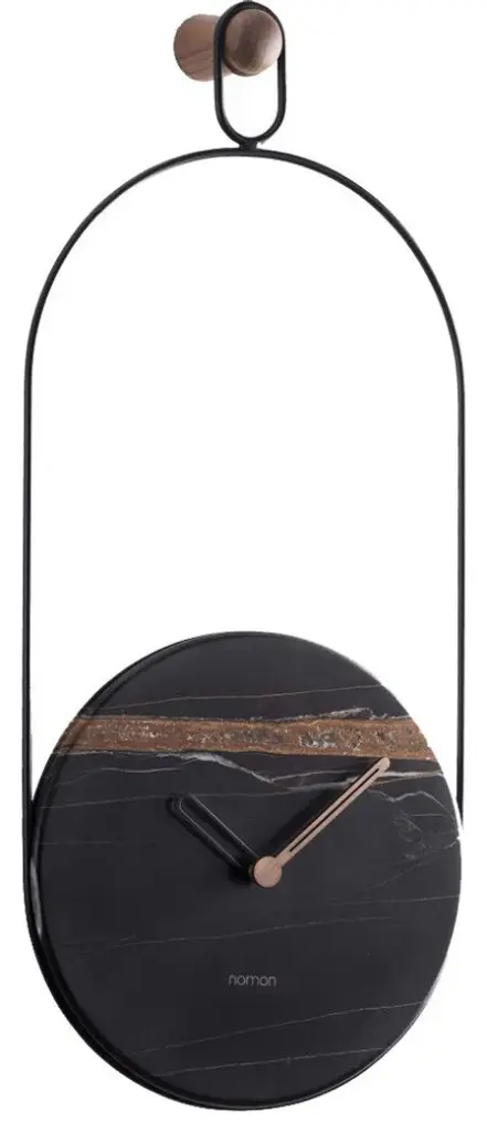 Carve out more time for art with the clean lines and open design of the Micro Eslabon Wall Clock from Nomon. Its simple form of rounded conical wall mount Metal oval hoop and round clock face offers a smooth refinement to its surroundings.Specifications:Style: Design ModernPremises: Office Kitchen Living Room BedroomDimensions: 10 cm H: 265 cmMechanism: UTS germanColor: Walnut/Black Sahara Noir Marble/Black Emperador Marble/Black Calacatta Gold Marble/BlackModel: ESLAB00N ESLAB0MS ESLAB0ME ESLAB0MC