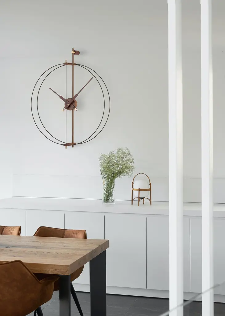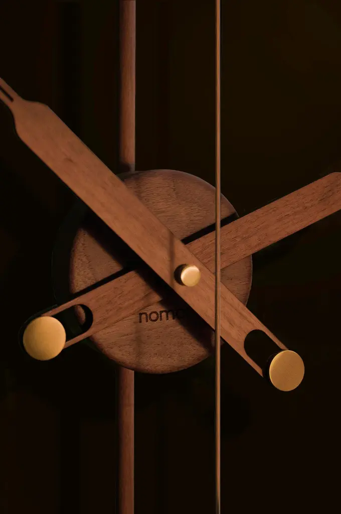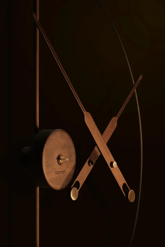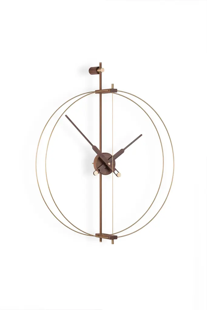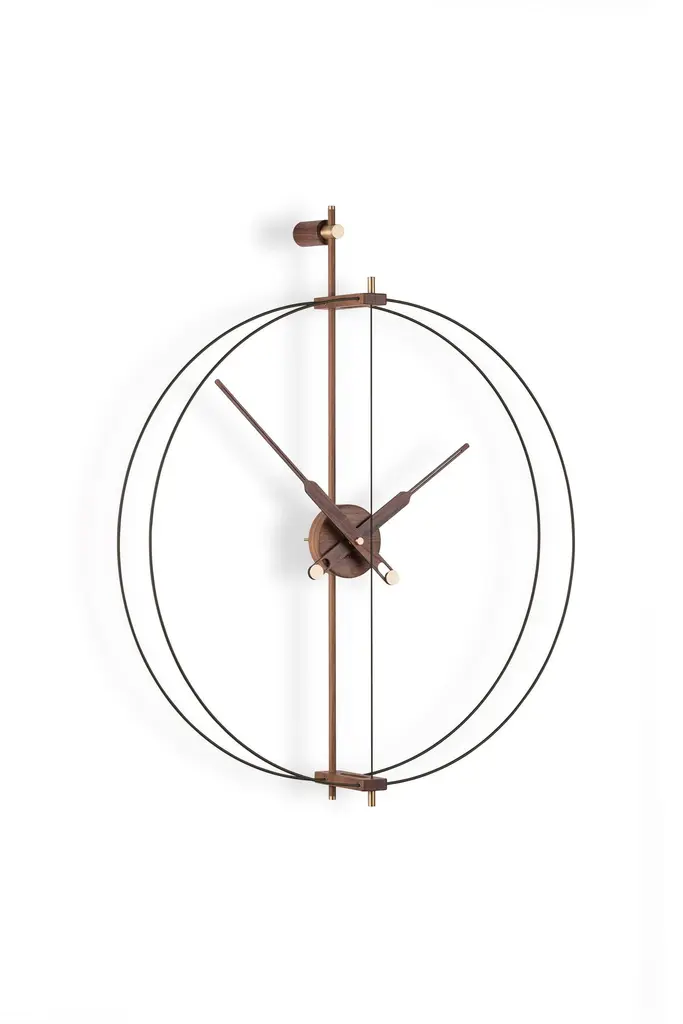 Premium version of the Mini Barcelona model, where design, aesthetics and quality continue to prevail above all else.Rings in brass finish, hands and central box in walnut wood.Rings in black fiberglass, hands and central box in walnut wood.Rings in black fiberglass, hands and central box in oak wood.