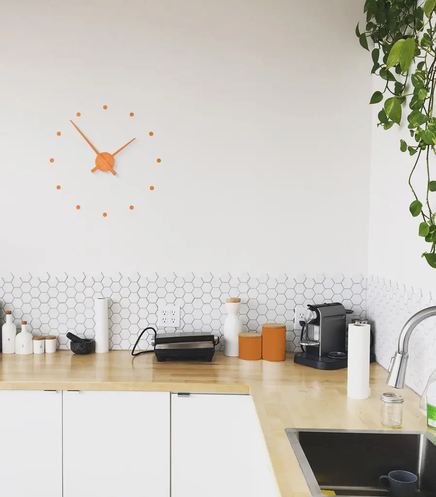 It is increasingly common to see a wall clock located anywhere in a house without regard to traditional areas such as the kitchen. This has a reason to be: This type of clocks has become an original decorative element. A design clock like the Nomon mini OJ gives great personality to any room where you place it and thanks to its dimensions of just 50 cm in diameter it also makes it a jovial and curious object.A wall can be completely empty but when you place an adhesive clock on it, it will be rightly decorated without the need to add any other decorative element.Only with its presence a wall clock can enrich a place without recharging it much more since its design will be enough. It is the kind of magic that you achieve when having a Nomon OJ mini clock.And the best with the reduced version of the OJ is that there is a wide variety of models and each one adapts to the space you need from a minimalist to the most risky or avant-garde.Ideal for designer houses as well as for modern flats, Nomon OJ mini can transform the atmosphere of a room or combine with modern or Nordic style furniture. It all depends on the model and color you choose.Available in Black, Grey, Silver, White, Red, Pumpkin, Mustard, Pink, Steel Blue