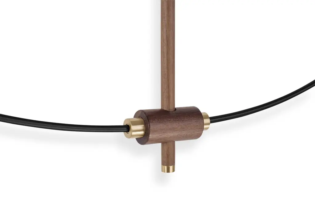 A tribute that aims to recover the prestige of grandf ther pendulum clocks by renewing their aesthetics. It can be installed on the wall or to the ceiling.Body and hands in walnut wood, details in polished brass.Body and hands in oak wood, details in graphite finish.