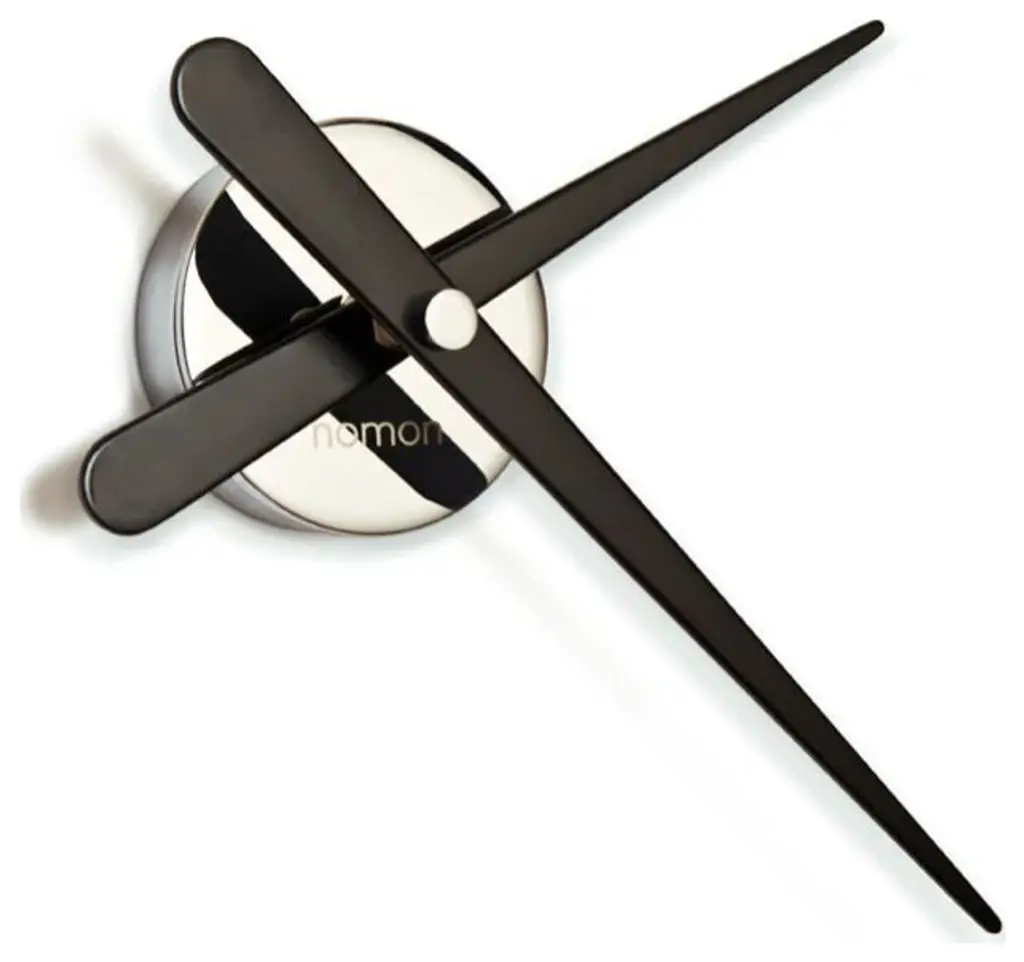 An aesthetically pleasing design. The Rodon mini L clock is the smaller version of the Rodon clock by Nomon. Each piece of the clock is separate and comes together to form an open and airy finished product. With contrasting finishes and sizes the time signals and wood hands pop for complementary element.Specifications:Style: Design ModernCase: Chrome steelHands: Black white or red lacquered walnut woodTime signals: Chrome steelPremises: Office Kitchen Living Room BedroomDimensions: 50 cmModel: RML012B RML012R RML012N