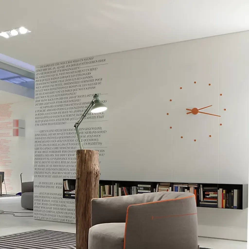 The definition of minimal design. The OJ Wall Clock from Nomon is a beautiful wall décor piece that also serves as a stunning clock. Features a simplistic design of dotted time signals made of polystyrene that are offered in a variety of vivid colors to suite your design taste.